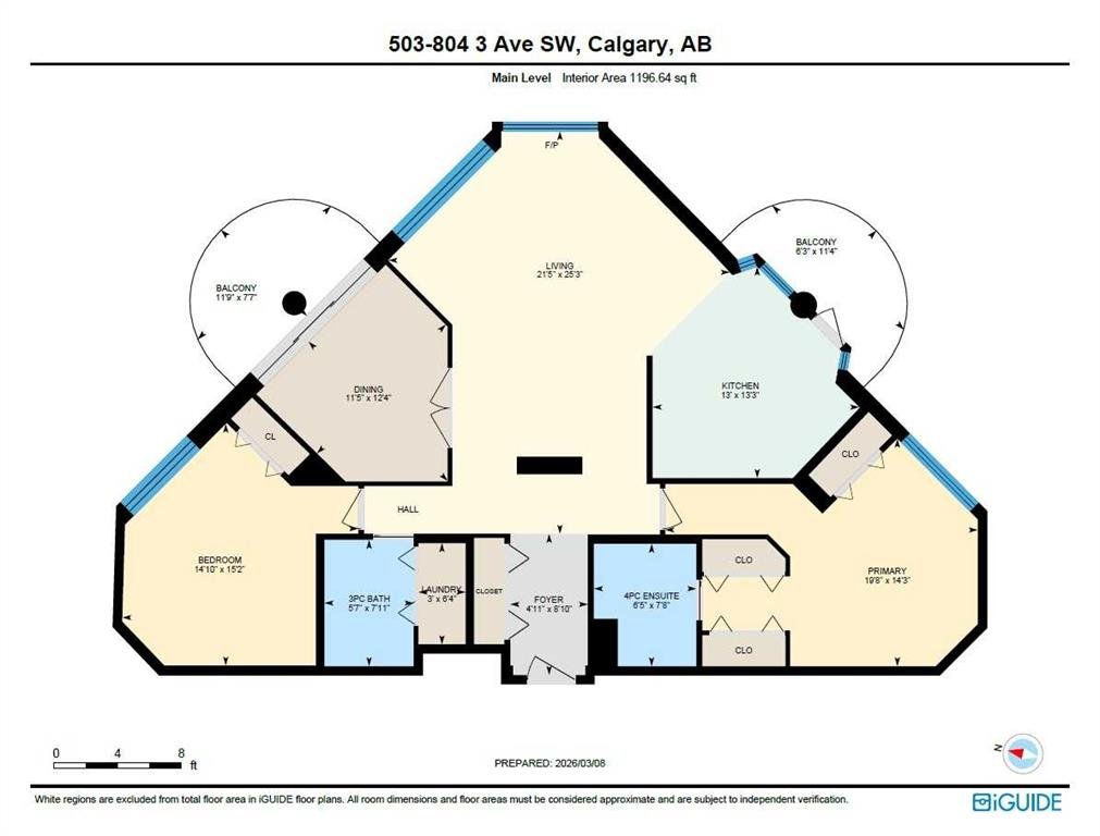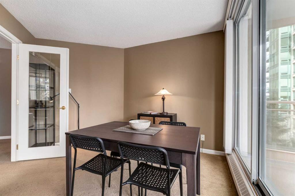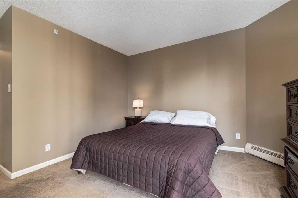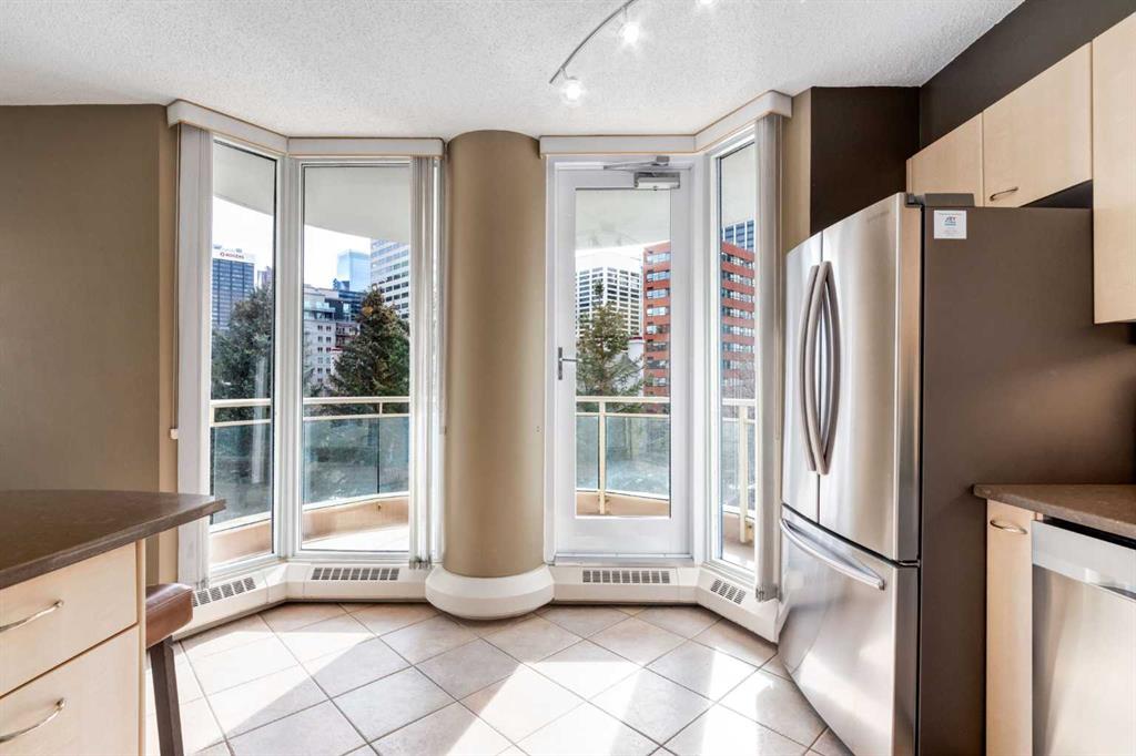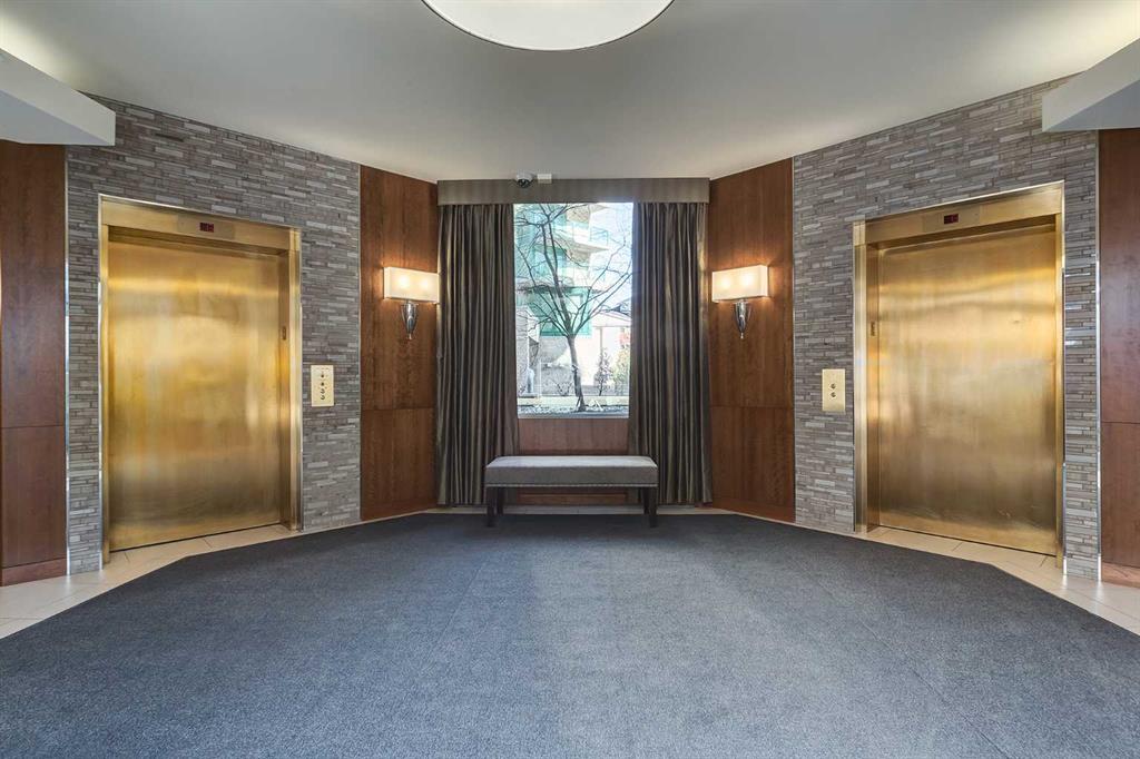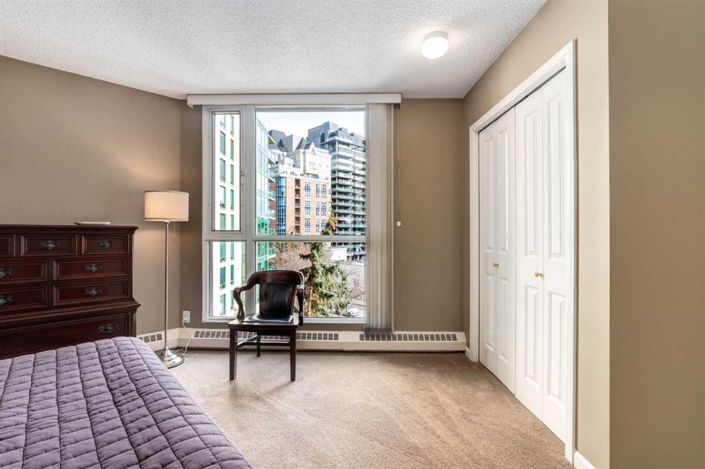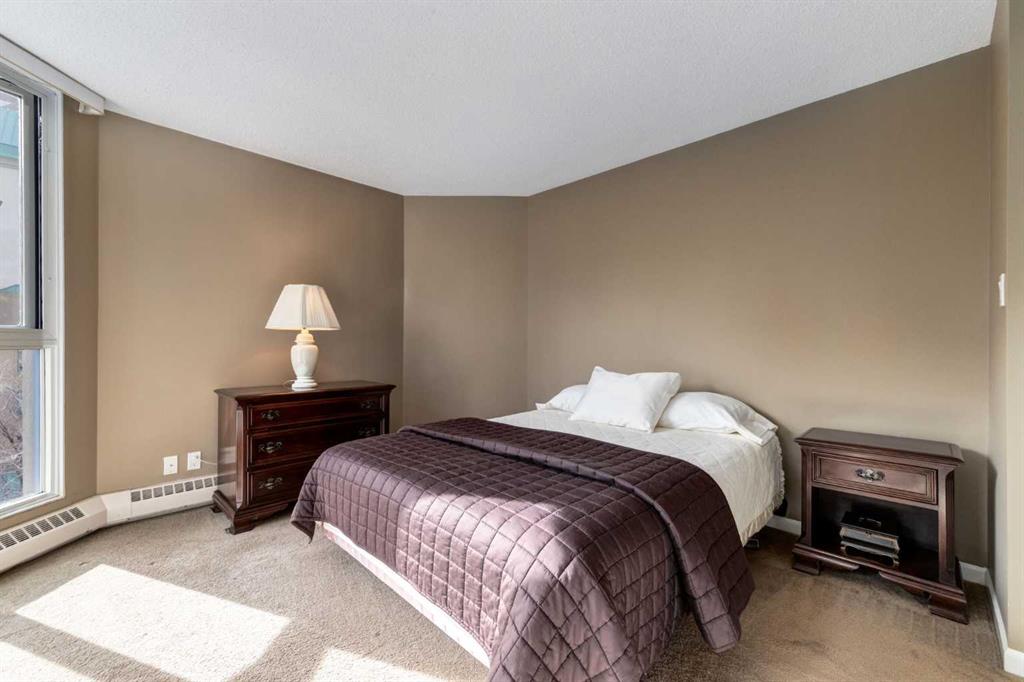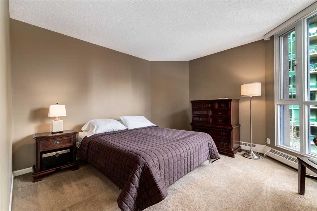 Your EXECUTIVE, urban condo lifestyle beckons at The Liberte - conveniently located in the highly sought-after Eau Claire area of Downtown Calgary, this prime END UNIT is a rare offering! Featuring a spacious floor plan with nearly 1200 SF, 2 bedrooms on either side of the suite PLUS a versatile DEN and 2 full baths. You are welcomed into the suite with a gracious tiled foyer with mirrored closet doors. The layout of the home provides separation and privacy between the living areas and the two bedrooms, each designed as a comfortable retreat. The main living/dining area is anchored with an inviting tiled gas, mantled fireplace with oversized windows to take in the urban views, the kitchen has been updated with quartz counters, stainless steel appliances and offers ample cabinets, drawers and counter space including breakfast ledge plus there is access to one of the two balconies – super convenient for your summer BBQ-ing. The den, located off the living area, is perfect for a home office, cozy dining room or other flex area as needed and features access to the second balcony. Primary bedroom easily accommodates a king-sized bed, features walk through closets with mirrored doors, and offers a 4 piece ensuite bath with soaker tub. Second bedroom is at the opposite end of the suite (great for room mates or a guest bedroom), 3 piece bath is convenient located right beside it. Side by side washer & dryer is a great upgrade. Rarely do suites in this location in the building come on the market. Titled parking stall in the heated underground parkade and additional storage locker are included. As a resident of Liberte, you will appreciate the updated and renovated common areas, have access to premium amenities, including a tennis court, bike storage, a fully equipped fitness centre and a residents lounge complete with a kitchen - ideal for your group gatherings. Plus, the building is very pet friendly! This prime location is situated just steps from some of the city’s finest restaurants including Alforno Bakery and Buchanan’s Chop House, is a short stroll to the Bow River, waking & bike pathways, Prince’s Island Park, the downtown core and surrounded by upscale amenities to suit all lifestyles; this incredible location is sure to impress. Offering the perfect blend of convenience, lifestyle, and luxury, this property is an unparalleled opportunity in the heart of the city. Perfect for the discerning buyer that wants luxury living and an option for a true lock and go lifestyle. Book your viewing Today!