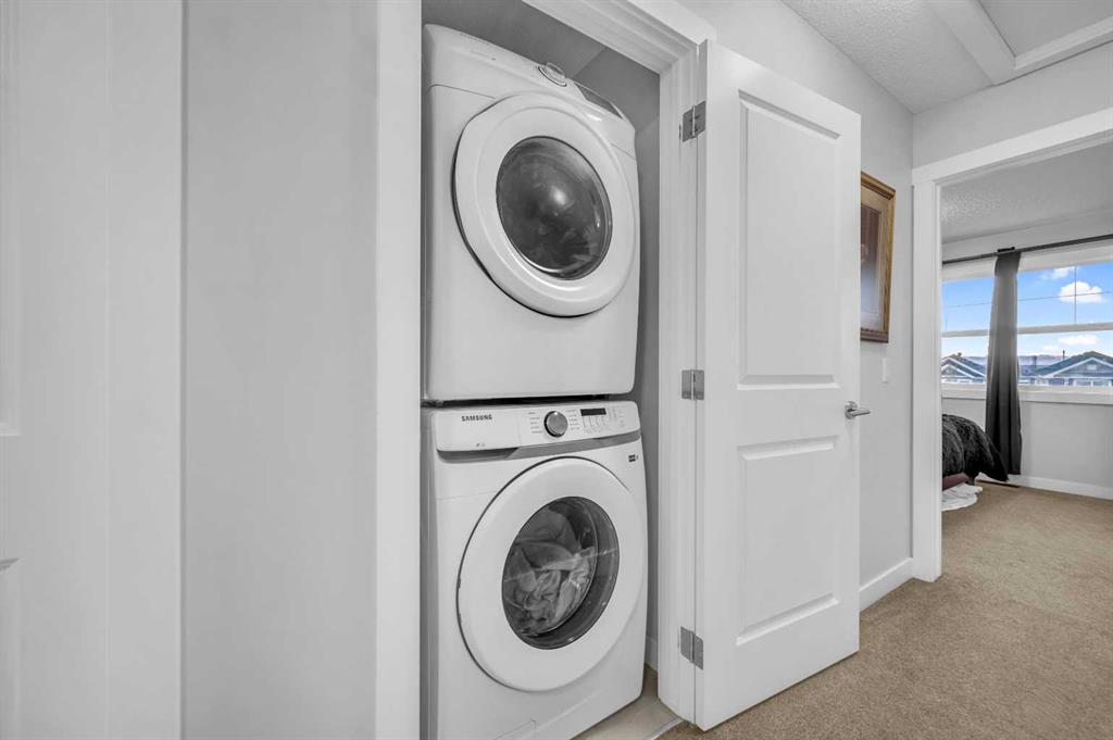 Welcome to your new home in Kings Heights! This beautifully maintained 975 sq ft two-storey townhome offers a bright open-concept layout with stunning luxury vinyl plank flooring throughout the main floor, flowing from the spacious living and dining areas into a larger-than-average kitchen featuring quartz countertops, stainless steel appliances, and plenty of counter and cabinet space—perfect for cooking and entertaining. A convenient two-piece bathroom completes the main level. Upstairs, you’ll find brand-new carpet (October 2025), two generous primary bedrooms each with its own ensuite, ample closet space, and large windows that fill the rooms with natural light, along with upper-floor laundry for added convenience. The tandem double garage below provides room for two cars or extra space for storage, a gym, or a workshop. Recent updates include a new garburator (May 2024) and a brand-new washer (September 2025). Located in the sought-after, family-friendly community of Kings Heights—close to schools, parks, restaurants, and shopping, with a new overpass into Airdre, tons of extra street parking, this home combines comfort, style, and exceptional value. Welcome home!