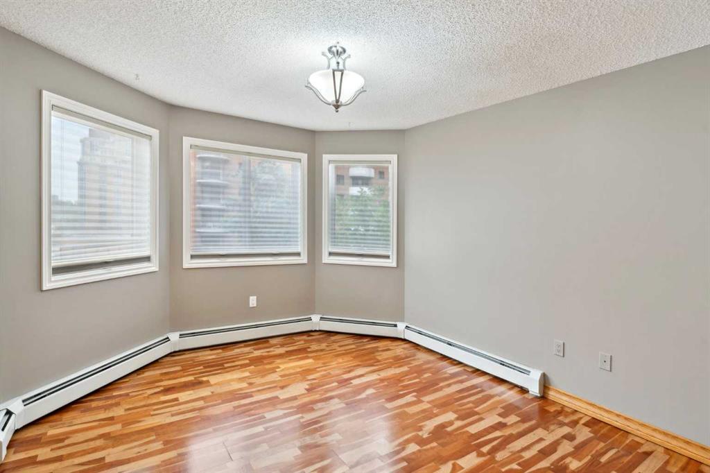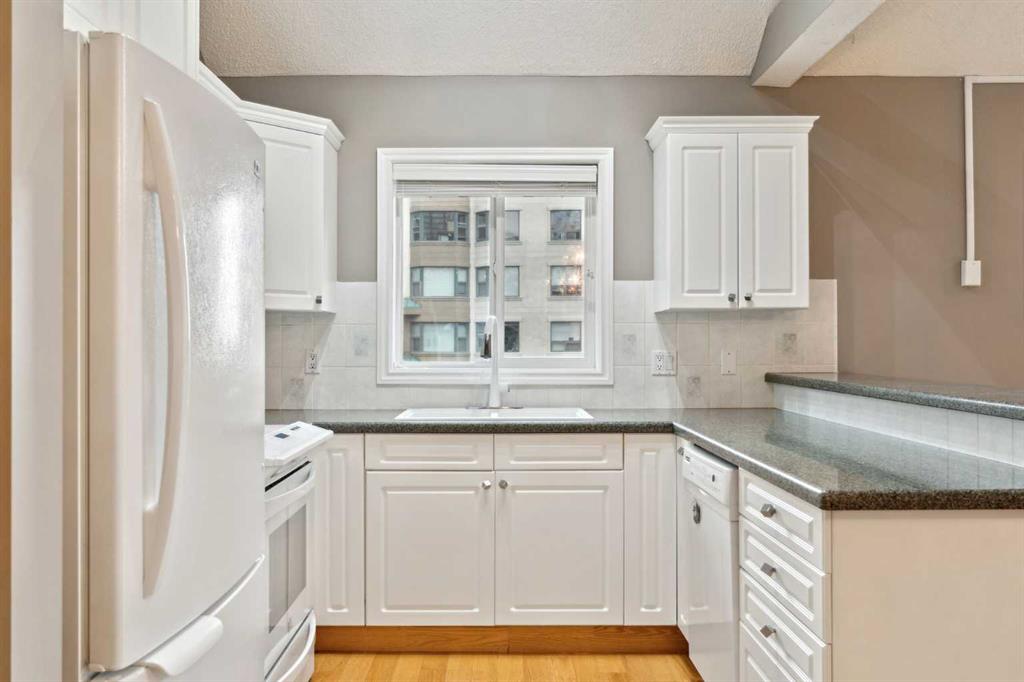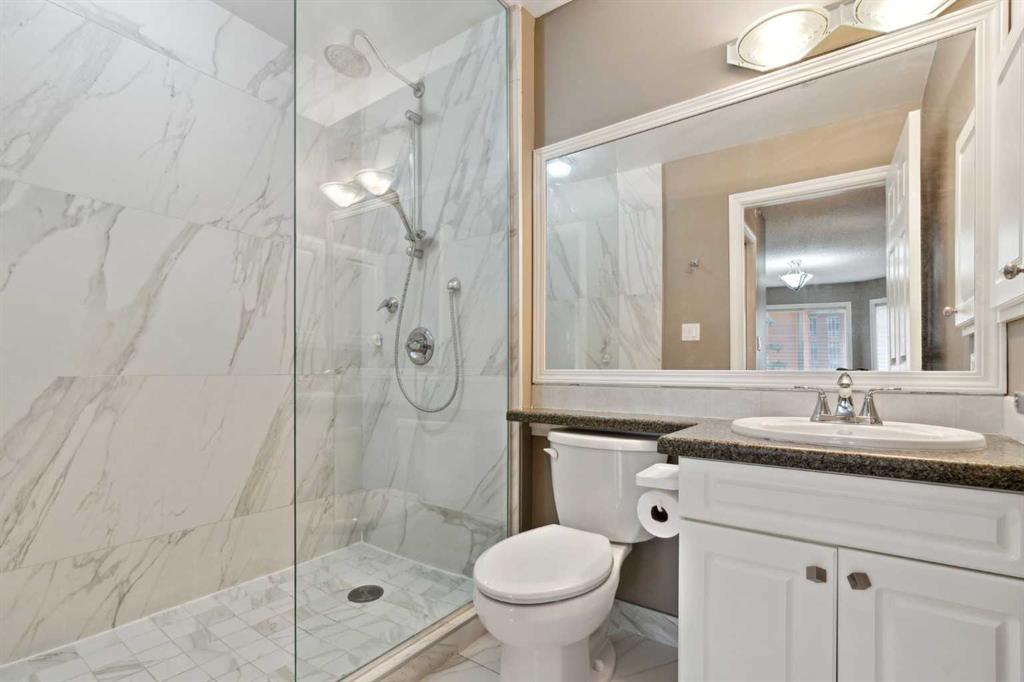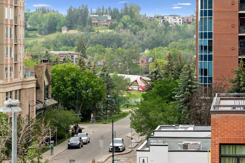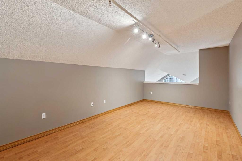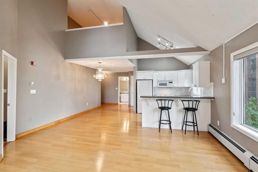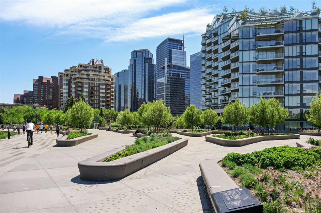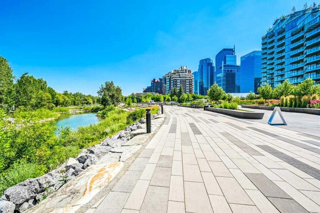 Exceptional value for this spectacular Top-Floor Penthouse in the Pavilions of Eau Claire with unparalleled prime northwest corner location! Outstanding condominium home with 2 UNDERGROUND TITLED PARKING STALLS, air conditioning, loft, soaring-high cathedral ceilings, many large bright corner windows, plenty of natural light and thoughtfully designed open-concept layout that seamlessly connects the kitchen, dining and living areas making it perfect for entertaining or home relaxation! Beautifully appointed and upgraded condo with hardwood & tile floors, granite counter-tops throughout, custom privatized Hunter-Douglas blinds with black-out features and both bathrooms have been completely renovated. Large northwest corner balcony with BBQ gas-line, brand new air conditioning unit, partial views of Peace Bridge and handy secure storage room. Spacious primary bedroom has large bay window, 3 pce ensuite bathroom with rain shower, walk-in closet and guest bedroom is conveniently located next to 4 pce main bathroom. Enjoy the corner gas fireplace and large versatile loft overlooking the living area that can be used as a family or recreation room! Comes with large separate laundry room with storage, European washer/dryer combo, under-stairs storage and choice parking stalls #80, #134(with storage cage) both conveniently located next to the elevator! This special home boasts the largest floor plan, finest location and best parking stalls in the building!! The ever popular Pavilions of Eau Claire offers a secure entrance lobby with seating area, main floor party/billiard room, secure underground titled parking & bike storage and visitor parking on the south side of the building. Exceptional heart of Eau Claire location nestled along the south bank of the Bow River, close to the world-class pathway system, beautiful Prince's Island Park and walking paths, close to great restaurants and fine dining, Buchanan's chop house & whisky bar is across the street, half-block to the outstanding Alforno bakery & cafe and just a short walk to Light Rail Transit and transportation, Peace Bridge, Kensington shops, Safeway and Calgary's vibrant city center. Enjoy downtown urban living at it's finest!