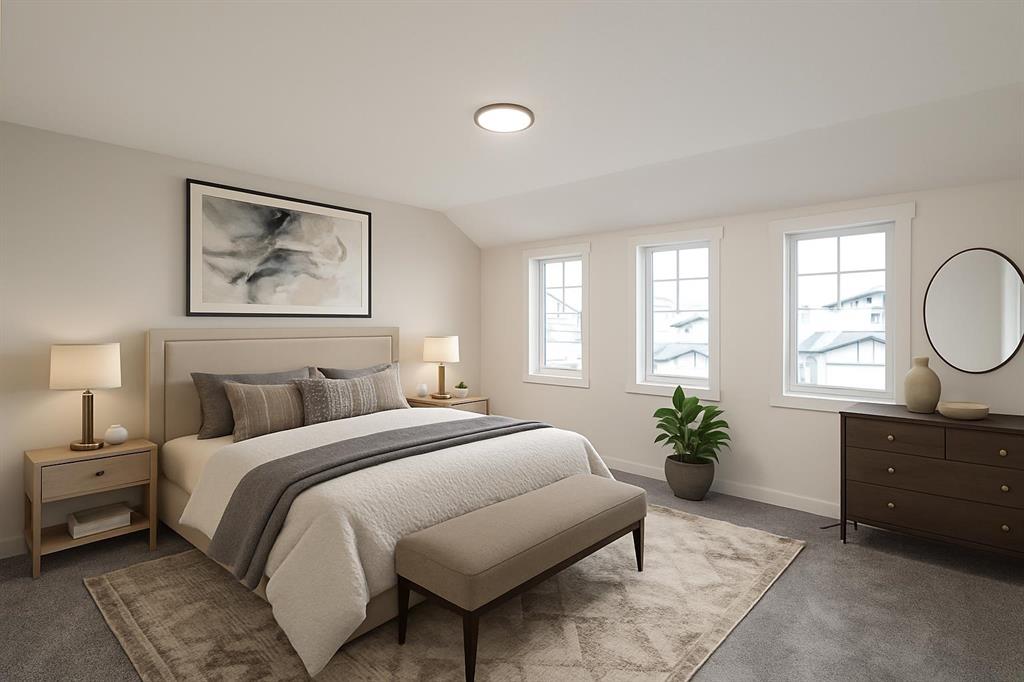 Located at 51 Baysprings Terrace SW, this meticulously designed townhouse offers 1,685 square feet (Unit under construction, waiting for accurate measurements of house and rooms) of modern living space, exuding both sophistication and comfort. The open-plan layout welcomes abundant natural light into a refined space where every detail has been thoughtfully curated. On the main level, durable vinyl flooring sets the stage for a contemporary kitchen complete with sleek quartz countertops and stainless steel appliances—ideal for inspiring culinary creations. A convenient powder bath and an adjoining mudroom that leads to a private backyard with a double car garage add both functionality and ease. Upstairs, premium carpeting flows through spacious bedrooms, complemented by elegantly tiled bathrooms and a well-appointed laundry area. With 3 generous bedrooms and 2.5 beautifully designed baths, this home effortlessly accommodates both relaxation and everyday living. Situated just minutes from Nose Creek School (K-4), shopping, parks, playgrounds, and scenic trails, this townhouse is perfectly positioned for families and professionals alike.