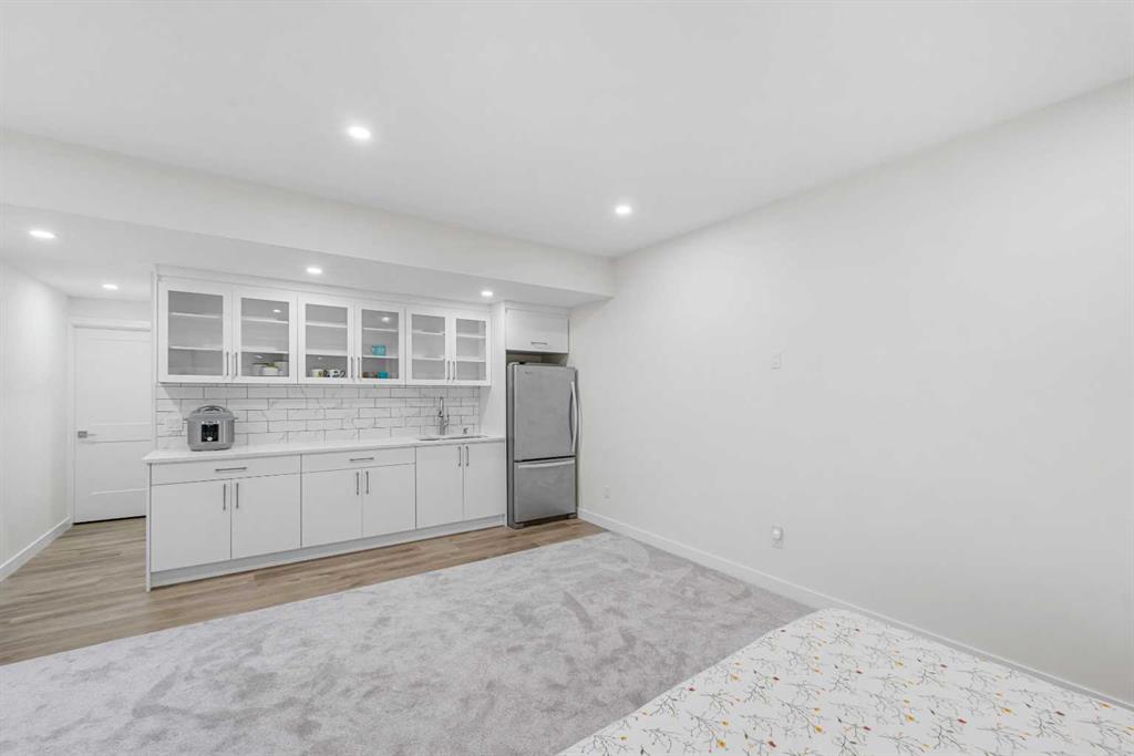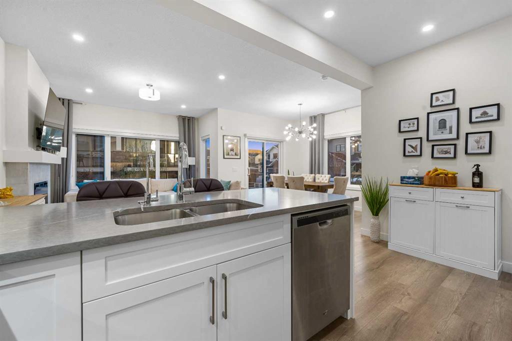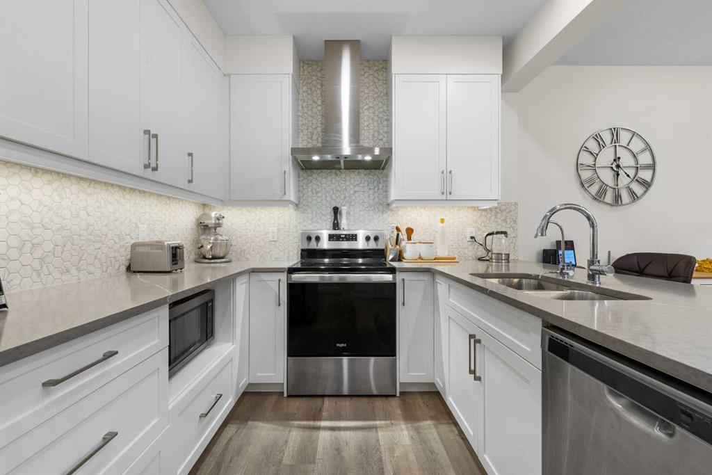* Open House Saturday October 25th from 11AM - 2PM * Corner Lot | 2-Storey Townhome | 1,576 SqFt + Finished Basement | Central AC | Luxurious Finishes Throughout | Open Floor Plan | Sparkling Kitchen | Full Height Cabinets | Quartz Countertops | Honeycomb Backsplash | Modern LED Lighting | Electric Blinds | Electric Fireplace | 3 Upper Level Bedrooms | Upper Level Laundry | Finished Basement | Incredible Entertainment Space | Wet Bar | 3pc Basement Bathroom | Deck | Heated Oversized Single Garage | Driveway. Welcome to this immaculate 3-bedroom, 2.5-bathroom townhome in the desirable community of Crestmont! This stylish end-unit offers 1,575 sqft of above-grade living space with an oversized single attached garage and modern open-concept design. The main floor features 9-foot ceilings, luxury vinyl plank flooring, a bright living area with large windows, and a beautifully finished kitchen with quartz countertops, stainless steel appliances, full-height cabinets, and a large central island. Step onto the private balcony — perfect for BBQs or relaxing evenings. The main level is complete with closet storage for a clean and organized space and a 2pc powder room. Upstairs you’ll find three well-appointed bedrooms, 2 bathrooms and your laundry. The spacious primary bedroom is paired with a walk-in closet and 4pc ensuite with a double vanity and walk-in shower. The primary bedroom has electric blinds as a bonus. The two additional bedrooms share the full 4pc bath with a tub/shower combo. Upper-level laundry adds convenience as its located near the bedrooms. The basement level is a great entertainment space; a wet bar with cabinets above & below make this the perfect space for special occasions! The basement has a 3pc bathroom and a great room for your seasonal items. The oversized garage is a great addition to your weather secure parking and having a full driveway is perfect for guests! The garage has LED Pot lighting and great storage. Located just steps from parks, walking paths, and easy access to the mountains and major roadways. Shows like new — just move in and enjoy! Crestmont is a peaceful, well-established community known for its natural beauty, abundant green spaces, and welcoming, family-friendly atmosphere. Residents enjoy easy access to major routes like Stoney Trail and Highway 1, making both downtown Calgary and the Rocky Mountains easily accessible. This home offers an ideal combination of contemporary style, smart functionality, and a connection to nature—all within a vibrant and growing neighbourhood. Hurry and book your showing today!
