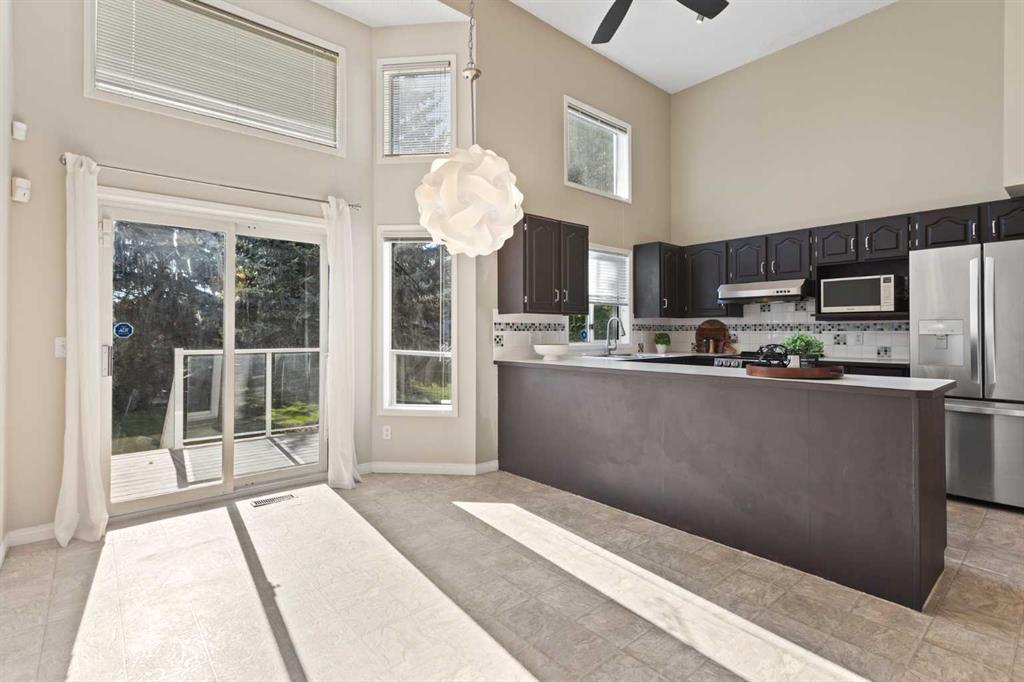 The main level showcases a stunning kitchen and dining area with soaring ceilings, expansive windows, and loads of natural light. The kitchen is equipped with stainless steel appliances, generous counter space, and plenty of storage—perfect for both everyday cooking and entertaining.