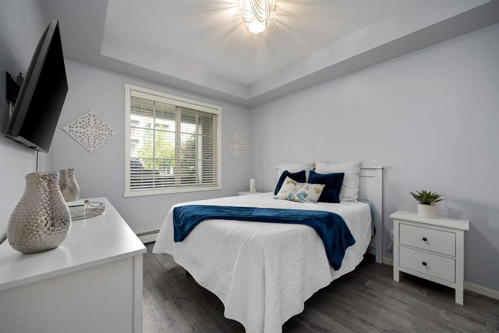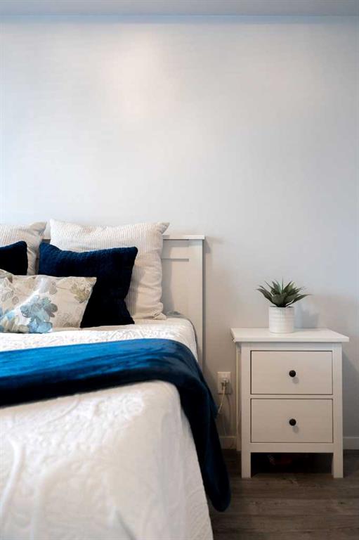 This beautifully upgraded main-floor condo blends luxury, comfort, and convenience in one of Calgary’s most sought-after communities. Featuring two spacious bedrooms and two full bathrooms, this home is designed with thoughtful details throughout — from luxury vinyl plank flooring and designer lighting on dimmers to a custom oversized quartz island and upgraded cabinetry. The kitchen is finished with a full premium appliance package, while the second bathroom features an elegant glass shower upgrade. Built in 2021, every element was carefully selected for modern elegance and everyday functionality. Enjoy year-round comfort with air conditioning, and peace of mind with exceptionally low condo fees in a well-managed building. Step outside to your massive 150+ sq. ft. patio — the largest in the complex — complete with a rare gated private entrance offering direct access to the parking lot. It’s perfect for morning coffee, summer gatherings, or pet owners who want convenience and privacy. Additional perks include a titled underground parking stall, secure storage locker, and an unbeatable location close to parks, pathways, shopping, and transit. Modern, low-maintenance living has never looked so good.