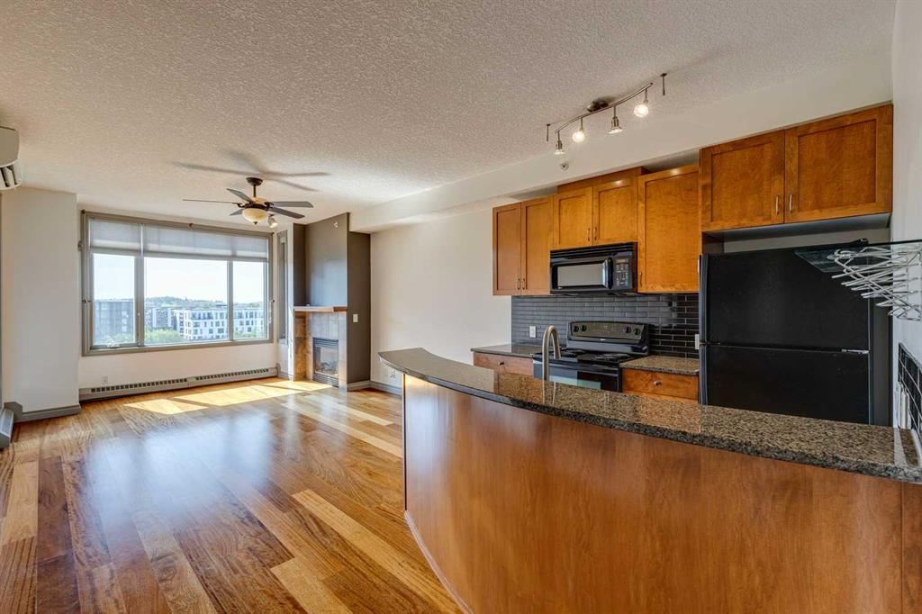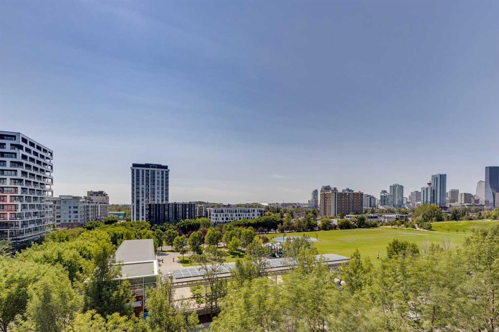 Welcome to Pontefino II - a stylish inner-city apartment nestled in the heart of one of Calgary’s most sought-after neighborhoods! This bright and beautifully positioned unit boasts sunny south-facing exposure, overlooking a serene park with stunning downtown and mountain views. Step out onto the spacious balcony, the perfect spot to relax and take in the cityscape. Inside, you'll find a thoughtfully designed layout with high ceilings and laminate flooring throughout the main living area. The open-concept kitchen features full-height cabinetry and a large island, ideal for both entertaining and everyday living. The primary bedroom offers exceptional functionality with a custom built-in organizer and bedframe, plus direct access to the 4-piece bathroom through a dual-sided closet for added convenience. Enjoy the best of urban living just steps from Calgary’s trendiest spots, including Shiki Menya, Blue Star Diner, OEB, Bike and Brew, Village Ice Cream, and more! Only a 5-minute bike ride to the Downtown Core and the Bow River Pathway system, this is city living at its finest. Don’t miss this incredible opportunity. Call your favorite realtor to book a private viewing today!