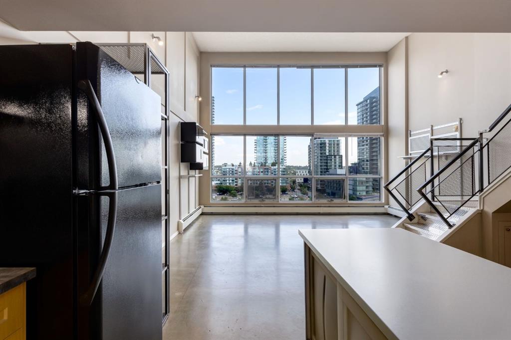 The north-facing windows fill the space with soft, ambient natural light all day—perfect for working from home or relaxing—without the heat of direct sun. You'll enjoy panoramic views of East Village, the Bow River, and Calgary’s skyline.