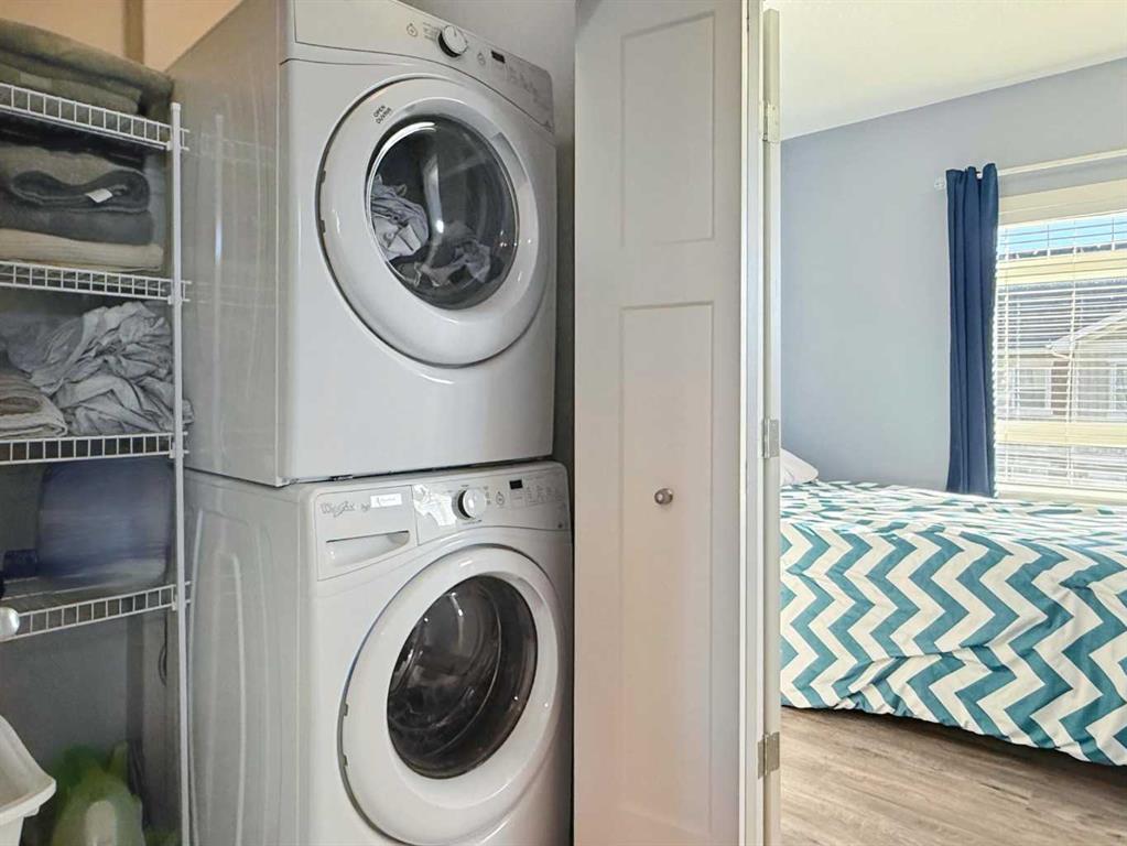 Upstairs you’ll love the VAULTED ceilings, convenient upper-floor laundry, and two spacious bedrooms including a generous master suite with room for a king-sized bed, walk-in closet, and a 3-piece ensuite featuring HEATED TILE flooring and an upgraded quartz vanity. The single attached garage includes CUSTOM SHELVING. Ideally located near visitor parking, schools, and shopping.