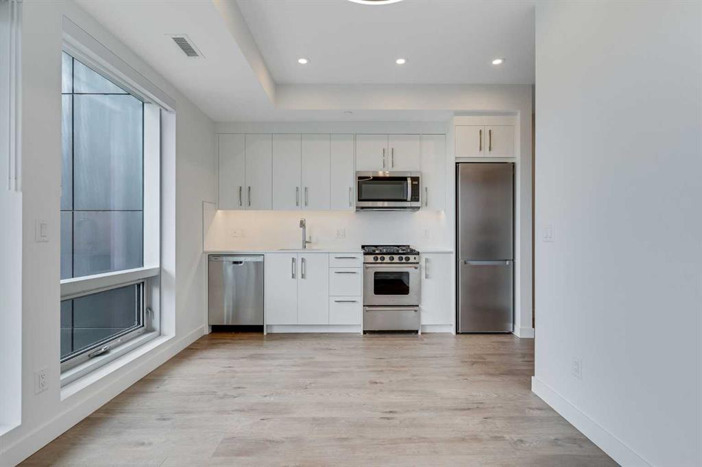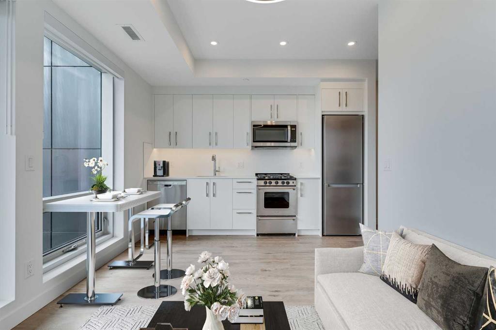 Experience vibrant urban living in this bright and contemporary 1-Bedroom, 1-Bathroom condo, perfectly situated in one of Calgary’s most walkable neighbourhoods. South-facing windows fill the home with natural light throughout the day, while central air conditioning keeps it comfortable year-round. The open-concept layout features a sleek kitchen with quartz countertops, full-height cabinetry, and stainless steel appliances, flowing seamlessly into the living area—ideal for both everyday living and entertaining. The bedroom provides a private retreat, paired with a stylish four-piece bathroom. In-unit laundry adds everyday convenience. Located on the fifth floor of a concrete building, the unit offers an inviting balcony with attractive city views. Step outside and you’re moments from boutique shopping, cafés, acclaimed restaurants, fitness studios, and scenic river pathways. Residents enjoy premium amenities, including a landscaped terrace, a fully equipped fitness centre, and a professional co-working space—offering the perfect combination of style, comfort, and convenience. *Creative Financing Available*