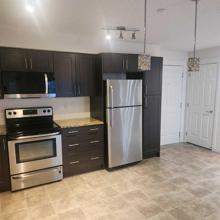 The open-concept floor plan offers just over 800 sq. ft. of comfortable living space, highlighted by brand-new LVP flooring, new carpet in the bedrooms, granite countertops, and quality fittings and fixtures throughout. The kitchen is equipped with stainless steel appliances and a brand-new microwave hood fan, while the concealed front-loading washer and dryer keep the space looking sleek and uncluttered.