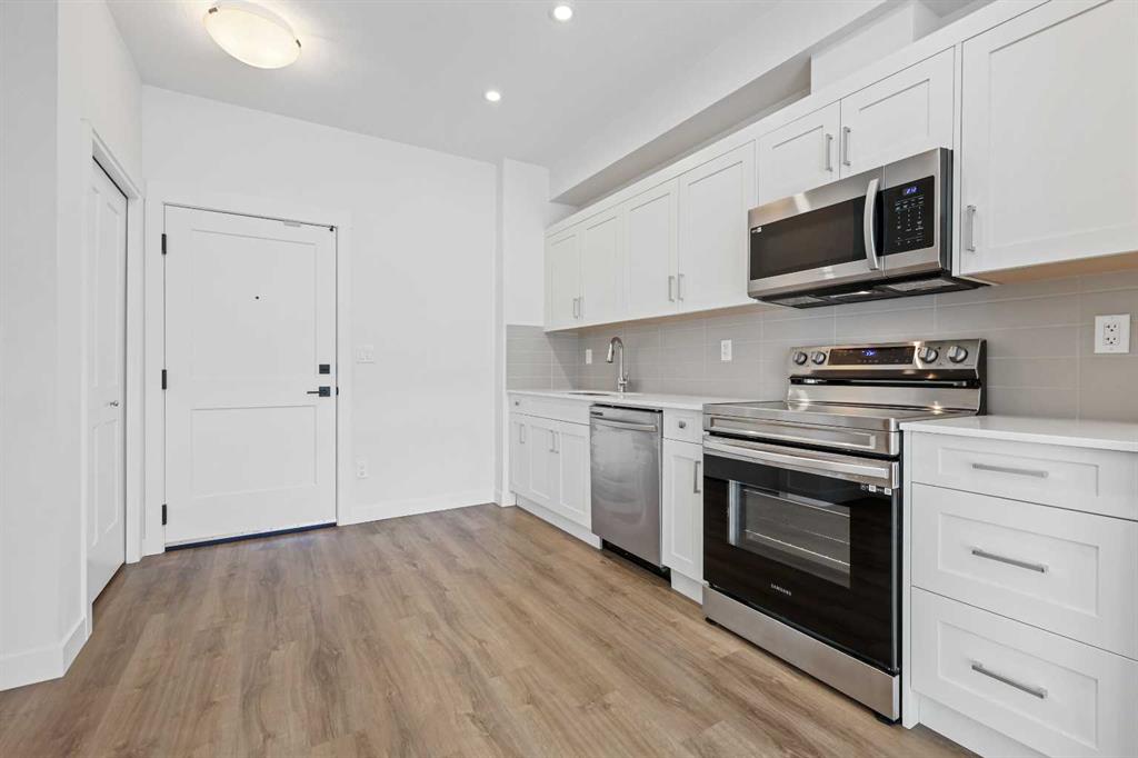 Welcome to this immaculate -feels brand new- 1 bedroom, 1 bathroom condo - perfect for the first time buyers or anyone looking to get into the market. Featuring in suite laundry, quartz countertops in both kitchen and bathroom, separate assigned storage locker and durable vinyl plank flooring. Enjoy your bright west facing unit and balcony complete with a gas BBQ line, ideal for sunsets and weekend grilling. The buildings location is fantastic - lots of FREE street parking, a hop and a skip to Superstore, movie theater, brand new recreational facility with pickleball courts, basketball and much more. The world's largest YMCA, a public library, plus retail shops and dinning options all at your doorstep. Don't miss out on this one!