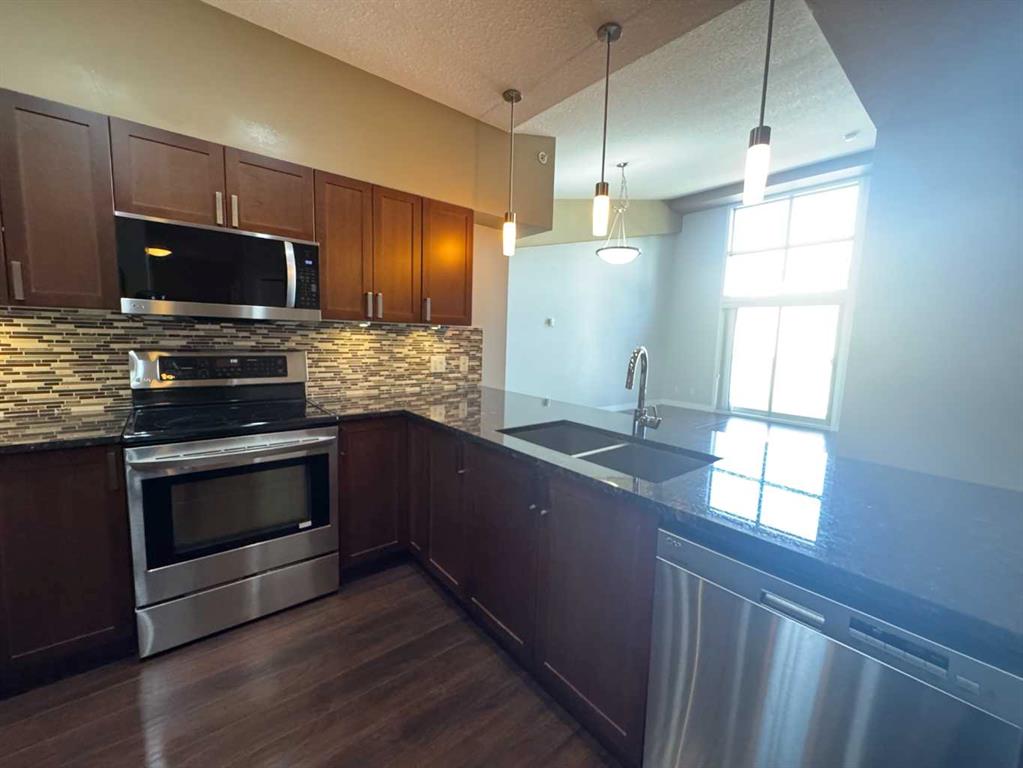 living in this stunning 1 bedroom plus den, 1 bathroom unit offering 747 sq. ft. of stylish living space. Located in the highly sought-after Stonecroft Highland Park, this home features an open-concept layout with luxurious finishes throughout. Step inside to 9-foot ceilings and a modern kitchen complete with sleek stainless steel appliances, gleaming granite countertops, and a convenient island overlooking the spacious dining and living area, perfect for entertaining or unwinding after a long day. The oversized primary bedroom provides a tranquil retreat with a generous walk-in closet, complemented by a beautifully appointed 4-piece bathroom. A versatile den offers an ideal workspace for those working from home. Additional features include a private patio, in-suite laundry, and secure underground parking. The building also offers excellent amenities such as a social room and visitor parking. Nestled on a quiet street next to an off-leash dog park, the location provides easy access to Deerfoot Trail, Centre Street, and downtown via public transit. This is the ideal home for those seeking the best of both worlds: urban convenience and suburban calm. Book your private showing today.