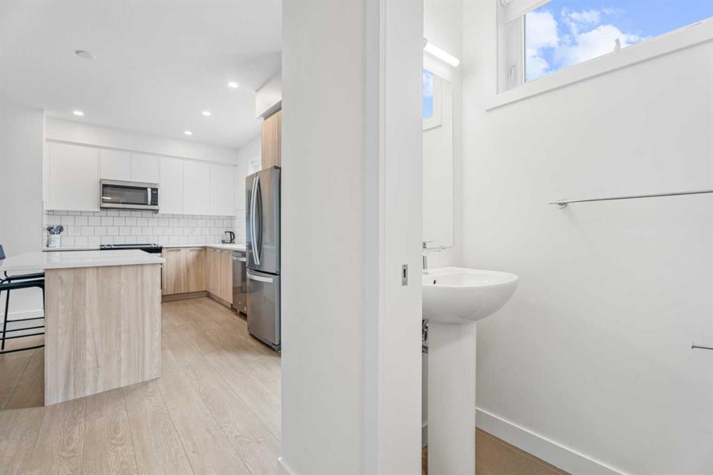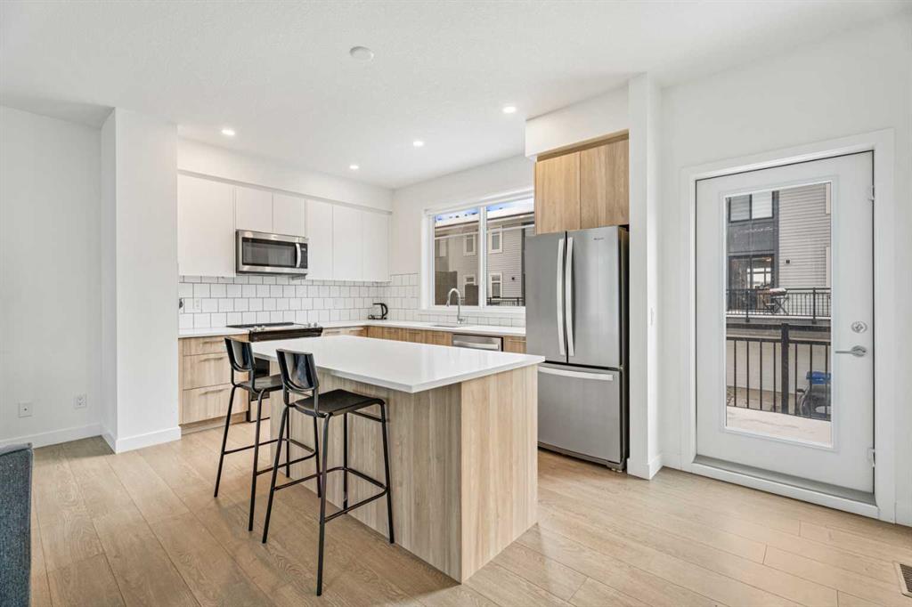 This beautiful 2-bedroom, 2.5-bath townhouse in the desirable community of Belmont offers comfort, style, and convenience. The main floor features an open-concept layout with elegant luxury vinyl plank flooring and large windows that fill the space with natural light. The modern kitchen is perfect for cooking enthusiasts, showcasing stainless steel appliances, stunning cabinetry, a tiled backsplash, quartz countertops, and a spacious central island. A stylish 2-piece bathroom with a contemporary vanity and a generous balcony equipped with a BBQ gas line complete the main level.