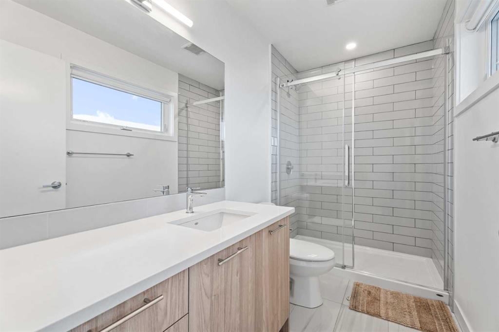 The upper floor includes two well-sized bedrooms. The primary suite offers large windows, a walk-in closet, and a private 3-piece ensuite. This level also includes a convenient laundry room and a full 4-piece bathroom.