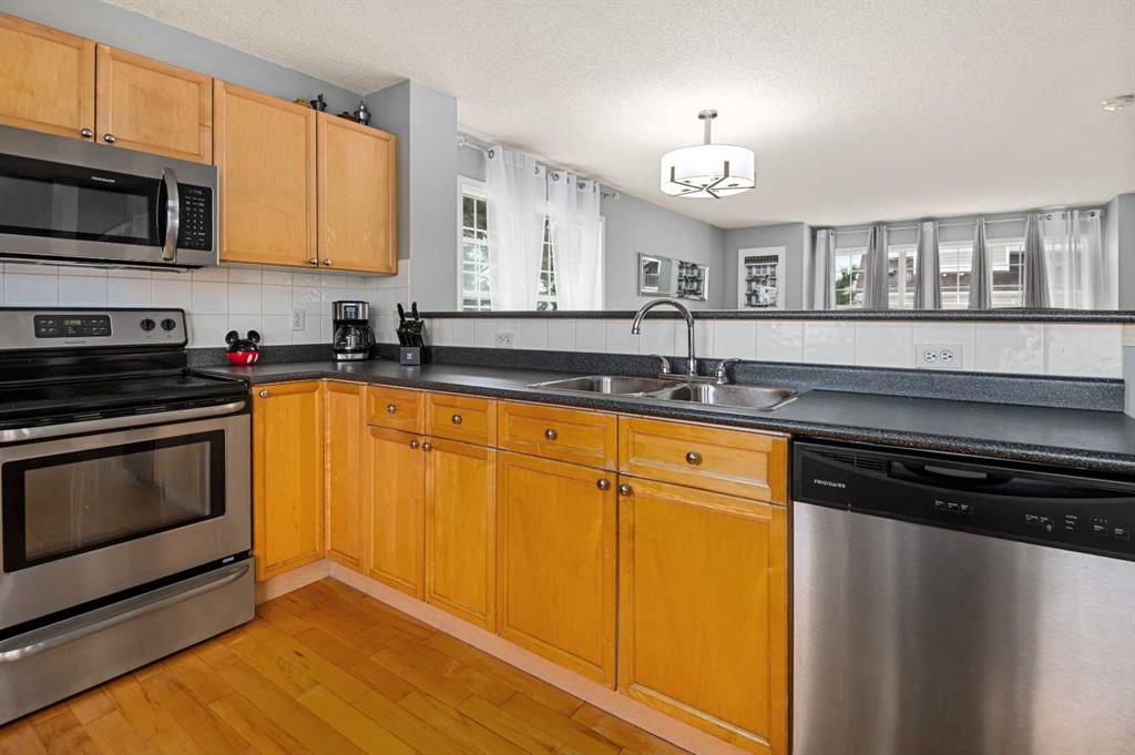 GORGEOUS TUSCANY TOWNHOUSE – END UNIT - LARGE YARD - 3 BEDROOMS – 1 MINUTE WALK TO C-TRAIN – DOUBLE ATTACHED GARAGE. Welcome to 53 Tuscany Springs Gardens NW – A Perfect Blend of Style, Comfort & Location. Step into this beautifully maintained 3-bedroom, 1.5-bathroom townhouse that combines modern living with everyday convenience. Featuring an oversized double-attached garage and a 1-minute walk to the Tuscany C-Train Station, this home offers everything you need for comfortable city living. The main level welcomes you with gleaming hardwood floors and an open-concept layout designed for both functionality and flow. The sunlit living room is framed by large front windows that fill the space with natural light, creating a warm and inviting atmosphere. Just steps away, the spacious dining area seamlessly connects to a stylish kitchen equipped with stainless steel appliances, an abundance of counter space, and a functional breakfast bar—ideal for busy mornings or casual entertaining. Step through the back door to your private, over-sized, fenced yard, perfect for summer BBQs, morning coffee, or unwinding in the evening. A convenient 2-piece powder room completes the main level. Upstairs, retreat to the generously sized primary bedroom featuring a walk-in closet, while two additional bedrooms provide the ideal setup for a growing family, guests, or a home office. The lower level offers laundry facilities, additional storage, and direct access to the oversized double garage keeping your vehicles protected from the elements with plenty of room for bikes, tools, or outdoor gear. Located in one of Calgary’s most sought-after communities, you’ll enjoy quick access to schools, parks, shopping, and transit—all just a short stroll away. This is more than a home, it's a lifestyle. Don’t miss your opportunity—book your private showing today!