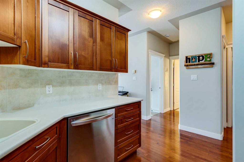 A rare opportunity to live on the top (Penthouse) floor of the highly desirable building 10 in the Wedgewoods of Discovery Ridge. Enjoy stunning views of lush greenery with beautiful Griffith Woods Park right outside, and a total of 1040sqft of bright and comfortable living space. There is also a titled parking stall that can be conveniently found just outside the elevators, a large storage locker that is assigned to this unit & in-suite laundry/storage. This unique layout features a functional u-shaped kitchen with additional cabinet banks, giving the rest of the unit a great open dining room & living space. Lovely upgraded hardwood floors, stainless steel appliances & designer window coverings including a phantom screen to the large private balcony. The primary bedroom offers great space, a large walk-in closet with custom built-ins and a luxurious 4pc en suite. The 2nd bedroom enjoys beautiful views and is conveniently located close to the central 3pc bathroom. A large in suite laundry room also offers excellent storage space. This is a very well maintained complex that offers amenities like; Gym, & Social Room/Library & situated in the heart of the community close to the amenities like ice rink, community building, walking paths & the bow river. Discovery Ridge is one of the most sought after communities in south Calgary and this is one of the best offerings in the complex. Welcome home!