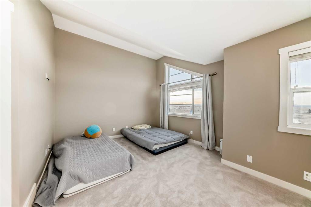 NEW CARPETS UPPER FLOOR, NEW LAMINATE FLOORING LIVING ROOM, NEW PAINT, NEW HOT WATER TANK. Experience modern living in this beautifully maintained home located in the vibrant community of Redstone. This property offers a bright, open-concept layout with stylish contemporary finishes and spacious living areas designed for both comfort and functionality and just freshly painted. The main floor offers an open concept with new living room laminate flooring and spacious balcony great for relaxing overlooking the pond and mountain view with natural lights, Kitchen offers lots of storage with white crisp cabinetry and newer stainless steel appliances with granite counter tops and kitchen island and has a spacious powder room. Head upstairs, carpet on stairs going upstairs, hallways and bedrooms were just replaced, this upper level offers a very spacious master bedroom with vaulted ceiling a walk in closet and an en-suite 4 piece bathroom , right across is another bedroom with vaulted ceiling over looking the pond and has easy access to another full bathroom. Laundry is conveniently located on this upper floor for your convenience. Enjoy your fully finished walk out basement with a large window and plenty of natural lights and 3rd full bathroom. The hot water tank was replaced in 2025 and the furnace was serviced in 2024. This house is moved in ready . Easy access to Stoney Trail, Métis Trail, Deerfoot Trail, the airport, and nearby parks and pathways. The backyard opens onto a stunning view of Redstone View of the mountains complete with a scenic bike/walk path, perfect for outdoor enthusiasts. Whether you’re a first-time buyer, growing family, or investor, this home offers exceptional value in a thriving neighborhood. A must-see! Book your showing today!