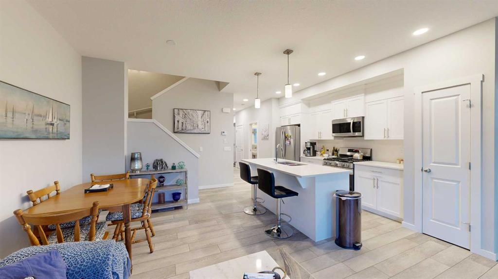 Welcome to this inviting townhouse in desirable Montrose Crossing, offering a bright open floor plan and a serene setting backing onto a peaceful waterway with walking paths. The main floor provides convenient access from the attached garage and features a two-piece bath, a functional kitchen with an adjoining dining area, and a comfortable living room with sliding doors leading to a deck overlooking the waterway—perfect for relaxing or BBQing. Upstairs, you’ll find three spacious bedrooms, including a primary suite with a walk-in closet and a four-piece ensuite, plus another full bath and a laundry room for added convenience. The walkout basement is unspoiled and ready for your personal touch, and the garage includes handy mezzanine storage. A beautiful blend of comfort, functionality, and natural beauty awaits in this Montrose Crossing home.