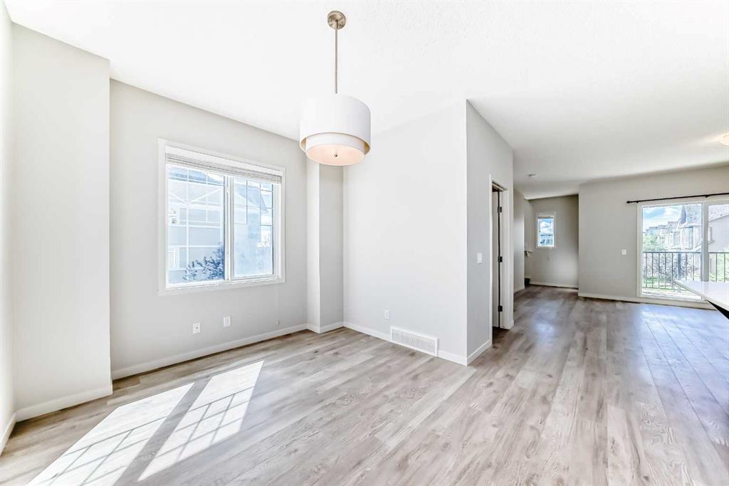 Welcome to 59 Nolanlake Cove NW, a beautifully updated 3-bedroom plus den END UNIT townhouse in the desirable community of Nolan Hill. With 1,705 sq. ft. of well-designed living space across three levels, this home offers comfort, functionality, and stylish upgrades. Enjoy the feel of a refreshed interior with brand new Luxury Vinyl Plank (LVP) flooring throughout the lower and upper levels, including both staircases, and fresh paint throughout the entire home. The main floor features an open-concept layout with quartz countertops, upgraded cabinetry with soft-close drawers, and a spacious island perfect for cooking and entertaining. The kitchen is completed with Whirlpool stainless steel appliances, a stand-up pantry, and a modern subway tile backsplash. The adjoining living and dining areas open to a private balcony with a natural gas line—perfect for barbecues and relaxing outdoors and enjoying peaceful courtyard views. A convenient 2-piece powder room is also located on this level. Upstairs, the primary bedroom features a large walk-in closet and a private luxurious en-suite with an oversized standing glass shower. Two additional bedrooms, a full 4-piece bathroom, and a laundry area complete the upper floor. The entry-level features a versatile den—perfect for a home office or gym—and access to a spacious double attached garage that’s fully insulated and drywalled. There's also street parking available right out front. This well-managed complex includes green spaces, visitor parking, and access to walking paths and ponds. You'll enjoy quick access to Sarcee Trail, Shaganappi Trail, and Stoney Trail, and you're just minutes from Sage Hill Centre, Beacon Hill Shopping Centre, Costco, restaurants, grocery stores, and more. Don’t miss the opportunity to own this move-in-ready, stylishly upgraded townhouse in a prime NW location. Schedule your private showing today!