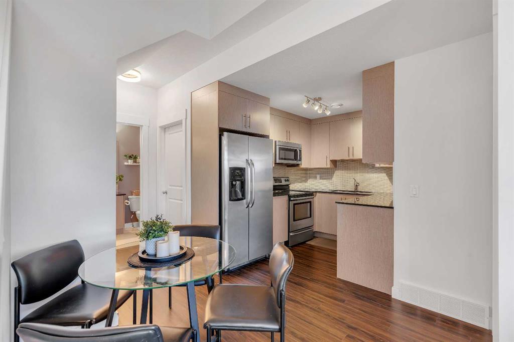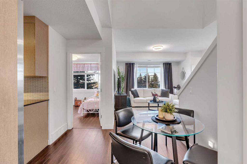 **Open Houses Sat. Feb. 7 & Sun. Feb. 8 1:00-4:00pm** Backing directly onto UNOBSTRUCTED GREENSPACE, this upper-level stacked townhome offers a rare blend of privacy, outlook, and everyday convenience in the heart of West Springs. Built by Truman Homes in 2014, the residence spans 1,265 SQ.FT. and features 2 BEDROOMS, 3 FULL BATHROOMS, and a LOFT-STYLE SECOND LEVEL designed for flexibility and comfort. The main level is thoughtfully arranged with an open living and dining area that connects naturally to the kitchen, finished with granite countertops throughout the home and creating a welcoming space for daily living and entertaining. Two bedrooms are located on this level, including a well-proportioned primary with its own ensuite, along with a second full bathroom and in-suite laundry. Upstairs, the bright loft expands the home’s functionality, ideal as a second living area, home office, or creative retreat, and is complemented by a THIRD FULL BATHROOM and access to one of TWO OUTDOOR LIVING AREAS. Together with the main-level outdoor space, both areas overlook peaceful greenspace, offering a calm, nature-forward setting where birds and local wildlife are often part of the view. The home includes ONE TITLED PARKING STALL and benefits from LOW CONDO FEES at $200.80 per month, supporting an easy, low-maintenance lifestyle. The location is a key highlight, with close proximity to West District’s growing mix of shops, dining, and services, nearby parks and pathways, and highly regarded schools including St. Joan of Arc School and West Springs School, with zoning for Ernest Manning High School and Bishop Carroll High School. Commuter access is straightforward via Bow Trail and 17th Avenue, with the 69 Street LRT Station just a short drive away, while westbound routes provide convenient access to Kananaskis and the mountain corridor. Polished, flexible, and quietly refined, this home delivers space, setting, and long-term lifestyle value in one of Calgary’s most established west-side communities.