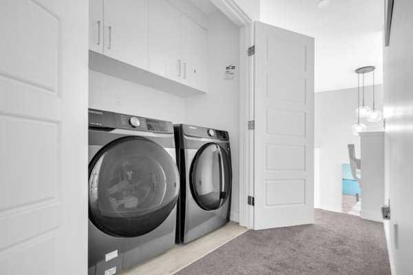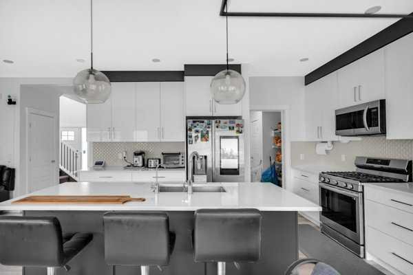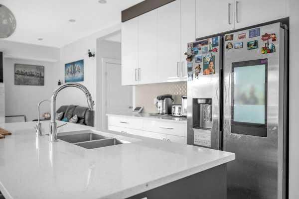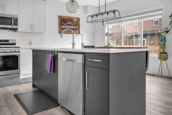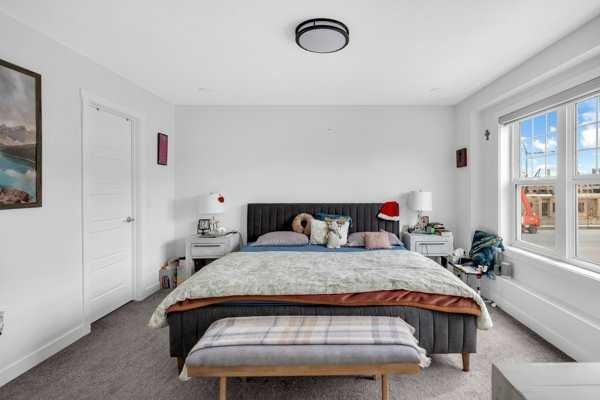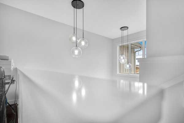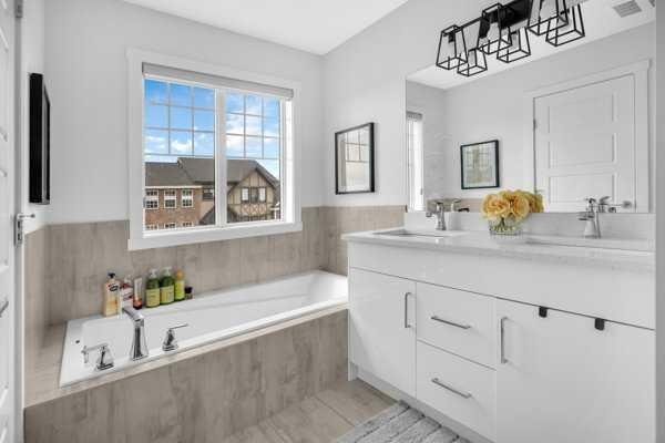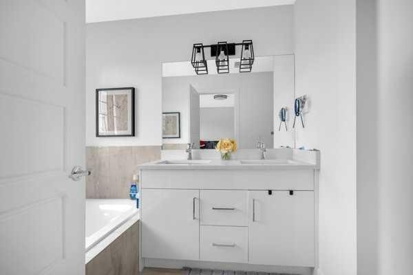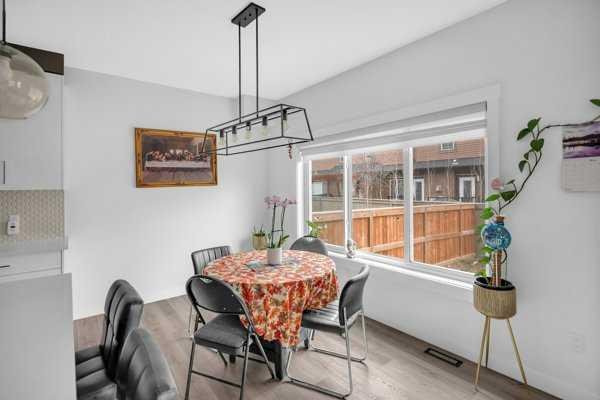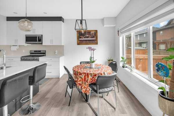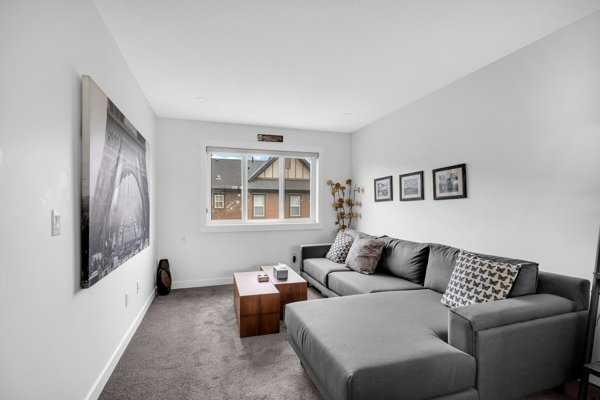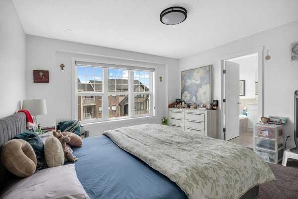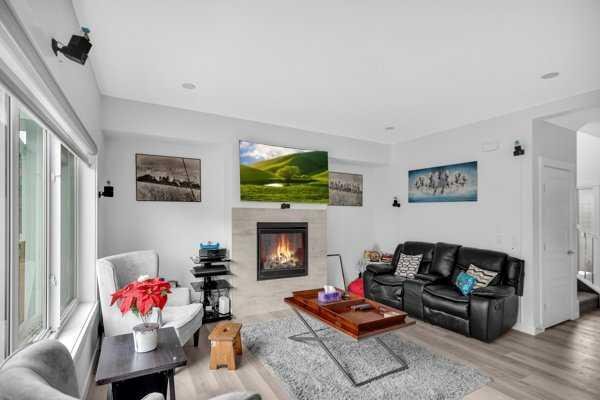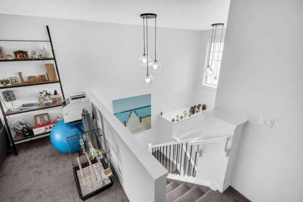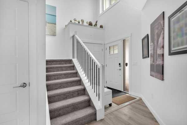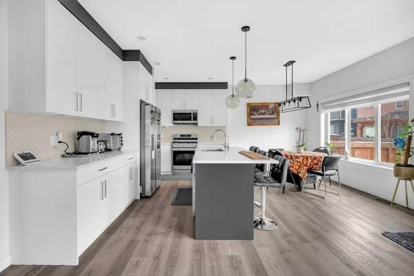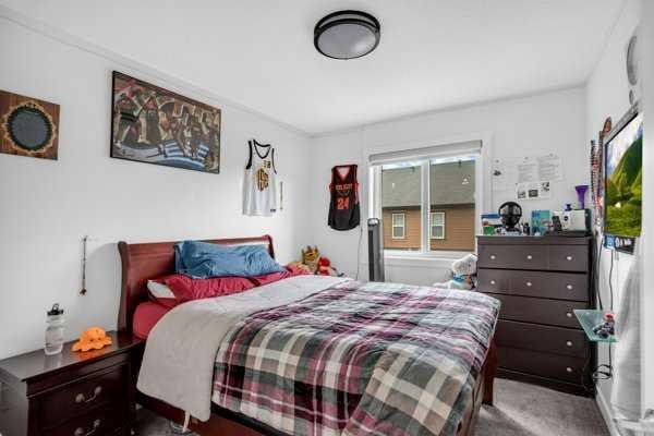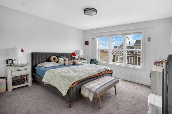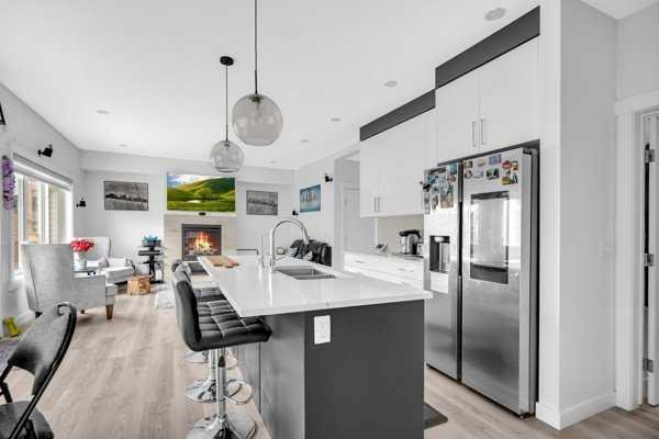 Welcome to this beautifully upgraded 1760 SQFT , 2-storey townhome with NO CONDO FEES and a DOUBLE ATTACHED GARAGE, Stylish and functional living space in one of Airdrie’s most desirable communities. Located just steps from Coopers Promenade, schools, parks, and everyday amenities, with a quick exit out of the city, this home combines comfort, convenience, and exceptional value. The curb appeal stands out , and a full driveway adds even more parking space. Step into a tiled foyer with closet storage for a clean and organized entry. The main level features a bright, open-concept layout designed for both relaxed living and effortless entertaining. Large windows fill the space with natural light, while wide plank flooring and modern finishes elevate the look and feel. The kitchen is a showstopper—finished with white quartz countertops, full-height cabinetry, a stylish backsplash, and stainless steel appliances including a gas stove and smart fridge. The large island with bar seating is ideal for quick meals or hosting friends, all under elegant pendant and recessed lighting. The dining area comfortably fits a table for six and leads into a cozy living room with a gas fireplace and a TV-ready wall above. A door from the living space opens to the private backyard with a patio—perfect for summer evenings and weekend barbecues. A walk-through pantry connects the kitchen to a functional mudroom with garage access, making everyday tasks like unloading groceries simple. A 2-piece bathroom completes the main floor. Upstairs, you will find three spacious bedrooms, two full bathrooms, a bonus family room, and a convenient laundry room with built-in cabinetry. The primary suite offers a large walk-in closet and a beautifully finished 5-piece ensuite with dual vanities, a soaking tub, and a walk-in shower. The two additional bedrooms are generously sized, with one featuring its own walk-in closet. The main 4-piece bath includes a tub/shower combo and modern finishes. The upper family room provides a flexible second living area, perfect for movie nights, a playroom, or a home office. The un-finished basement with rough-in plumbing already in place. Pride of ownership is evident throughout, as the home has been meticulously maintained by its original owner. With standout upgrades, a family-friendly layout, and a sought-after location, this townhome is ready to welcome its next chapter.