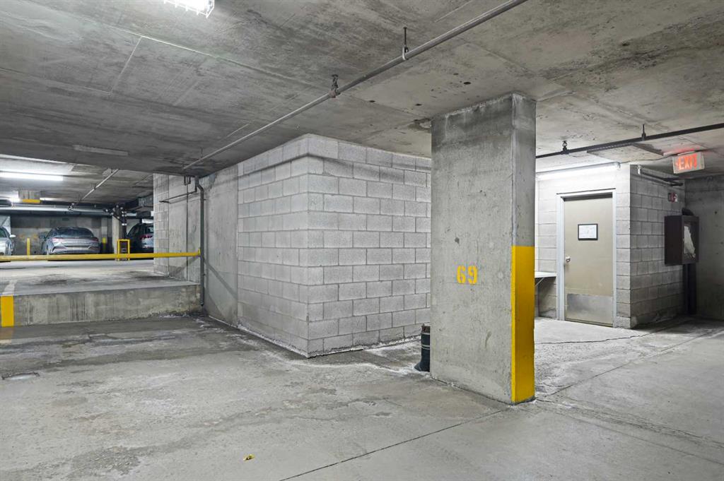 Parking & Security: The unit includes a secure, heated indoor parking stall (#59) with a convenient car wash bay and ample outdoor visitor parking.