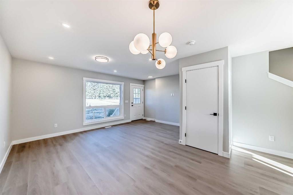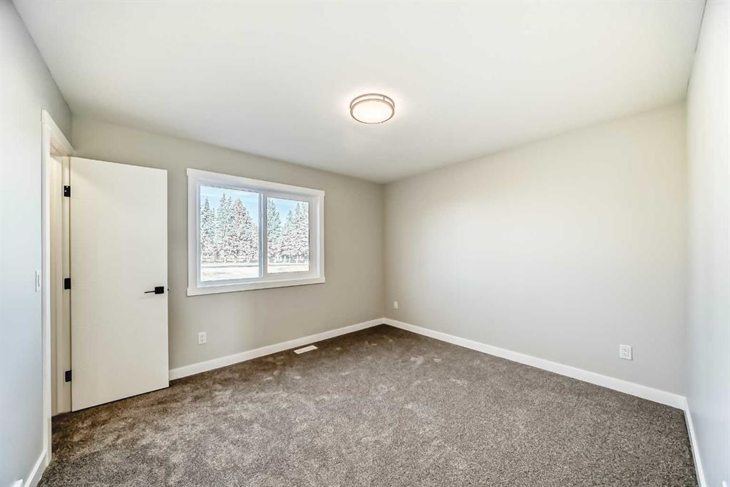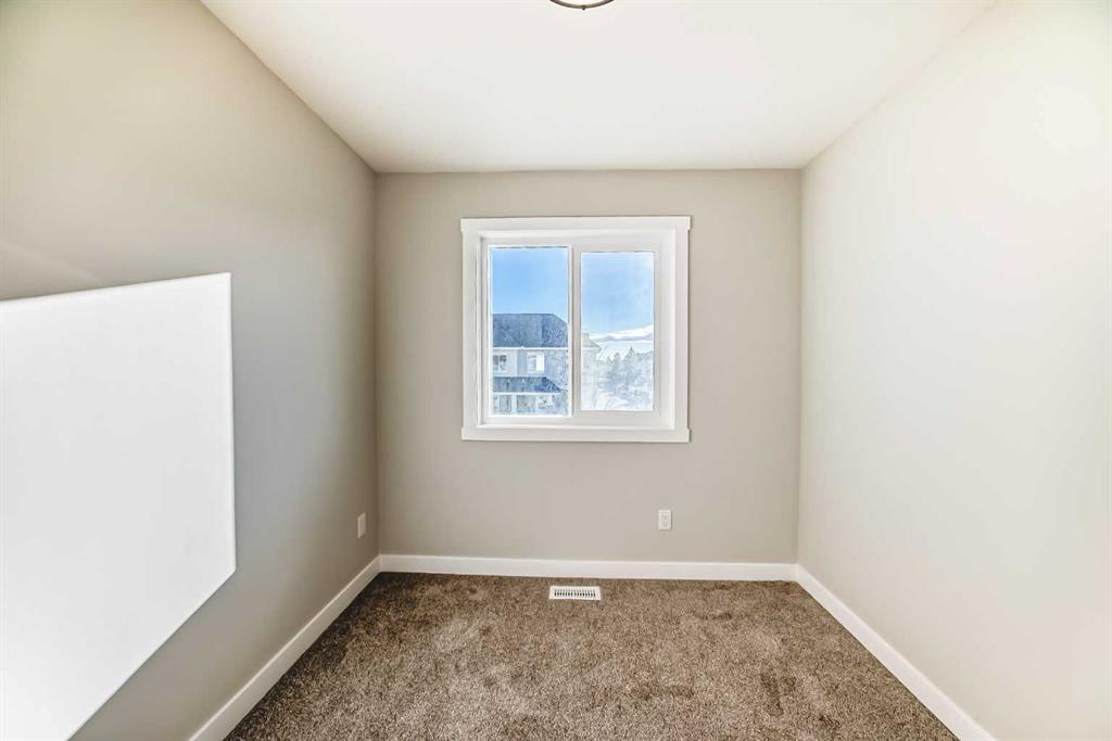 Welcome to 603 Clover Road – a newly built, fully finished townhome that perfectly blends modern design, quality craftsmanship, and thoughtful functionality. Offering over 1590 sq ft of fully developed living space, this stunning two-story features 4 bedrooms and 3.5 bathrooms, making it ideal for young professionals, investors or families seeking extra space and comfort. Step inside and you’ll be greeted by 9-foot ceilings, a bright and open layout, and stylish finishes throughout. The main floor features LVP flooring, numerous LED pot lights, and a beautiful kitchen with quartz countertops, high-gloss cabinetry, subway tile backsplash, and Whirlpool stainless steel appliances. The undermount sink with a pull-spray faucet and a convenient water line to the fridge add both elegance and practicality. Upstairs, you’ll find a spacious primary suite complete with its own 3 pc ensuite and walk in closet, 2 additional bedrooms, a main 4-piece bathroom, and stacked laundry room for added convenience. All bathrooms feature quartz counters, undermount sinks, ceramic tile floors and walls, and comfort-height toilets. The fully finished basement expands your living space with a cozy recreation area, a custom dry bar with a mini fridge, an additional bedroom, and a full bathroom—perfect for guests, entertaining, or a home office setup. Additional highlights include a high-efficiency furnace, HRV system and 50-gallon hot water tank. Outside, the home showcases Smartboard siding, and a decorative fiberglass front entry door. Large private concrete patio equipped with a gas line rough-in for easy summer BBQs. This home also includes two assigned parking stalls, and a low-maintenance lifestyle with monthly condo fees of $275.35. This move-in-ready home combines modern design, energy efficiency, and functional living in a peaceful Carstairs community — the perfect place to call home.