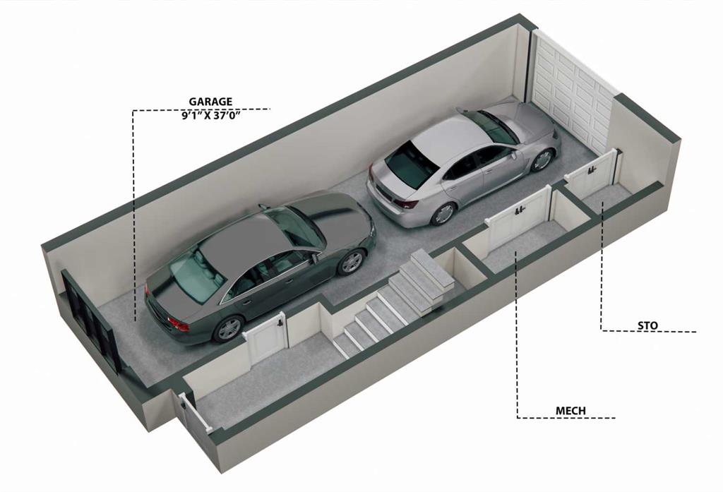 tandem double car garage with room for two vehicles plus additional storage space. The home is fully landscaped with a thoughtful design.