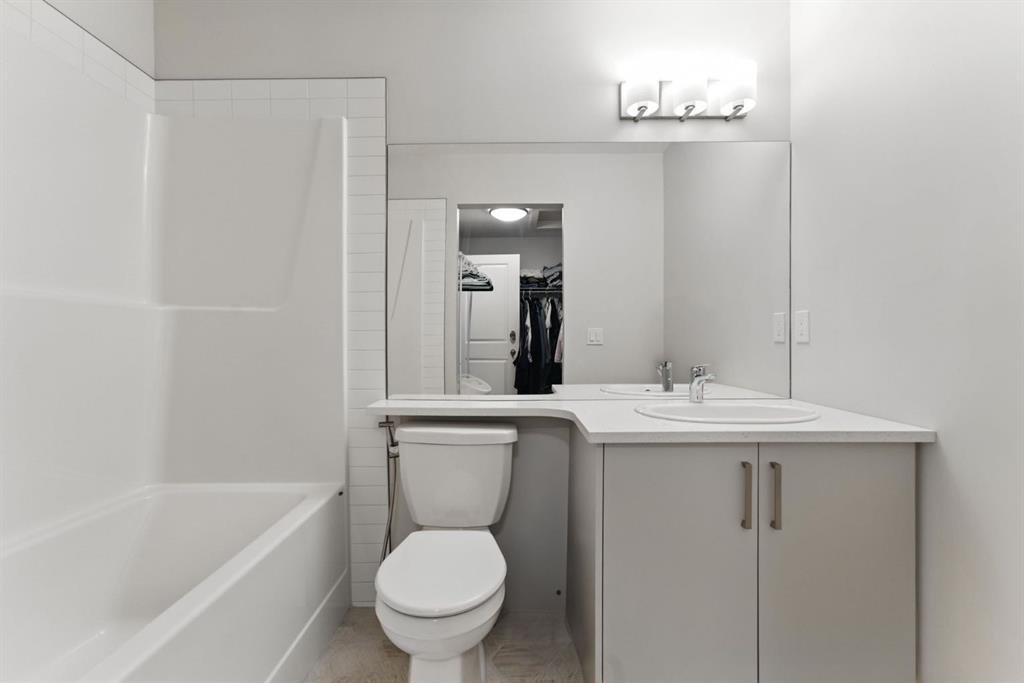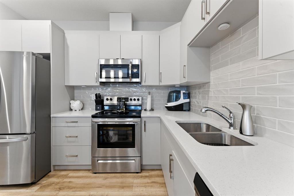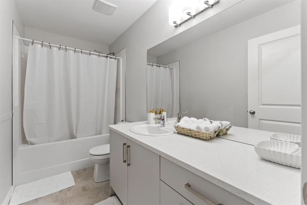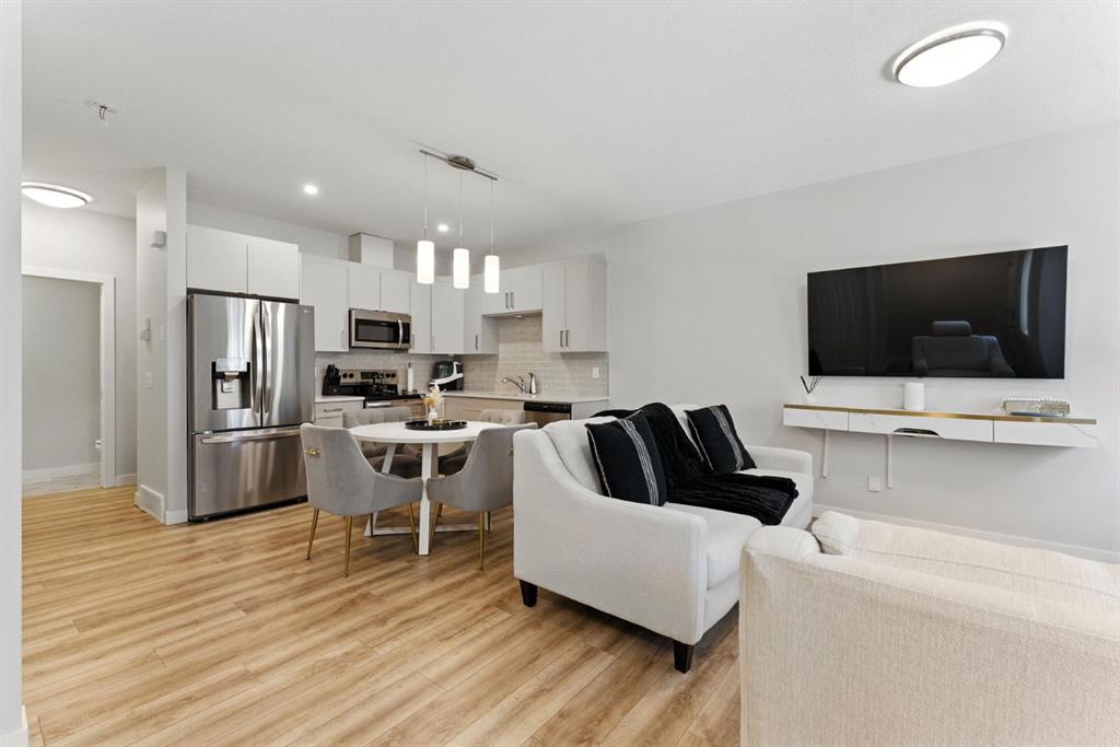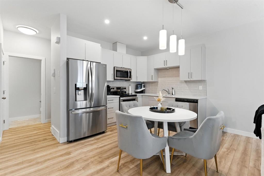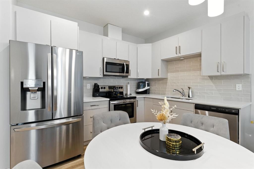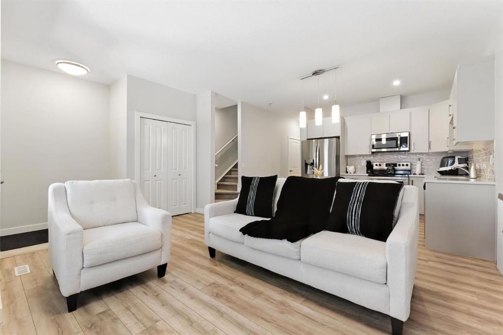 Discover modern living in this beautifully maintained 2 bedroom, 2.5 bathroom stacked townhouse in Airdrie’s sought-after Canals community. With 1,082 sq. ft. of thoughtfully designed space, this home offers an open-concept main floor with durable vinyl plank flooring, a bright living area, and a sleek, contemporary kitchen perfect for everyday living and entertaining. A convenient mudroom off the entrance leads to the attached garage, while a main floor powder room adds guest-friendly functionality. Upstairs, enjoy cozy carpeting, upper-level laundry, and two spacious bedrooms, including a private primary suite with a walk-in closet and 4-piece ensuite. A second full bathroom provides added convenience, and the undeveloped basement offers endless potential for a home office, gym, or extra storage. Perfectly located along 8th Street SW, you’re just minutes from shopping, dining, schools, parks, and scenic walking paths along the canals. Whether you're a first-time buyer, downsizer, or simply looking for low-maintenance living in a vibrant neighbourhood, this move-in-ready home is full of comfort, style, and everyday convenience.