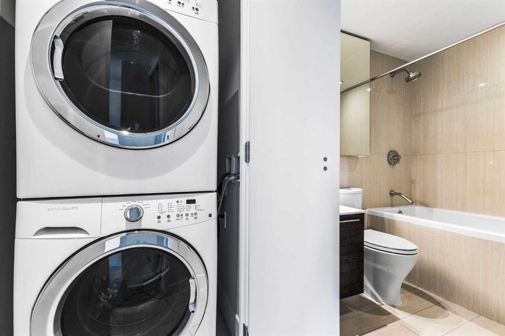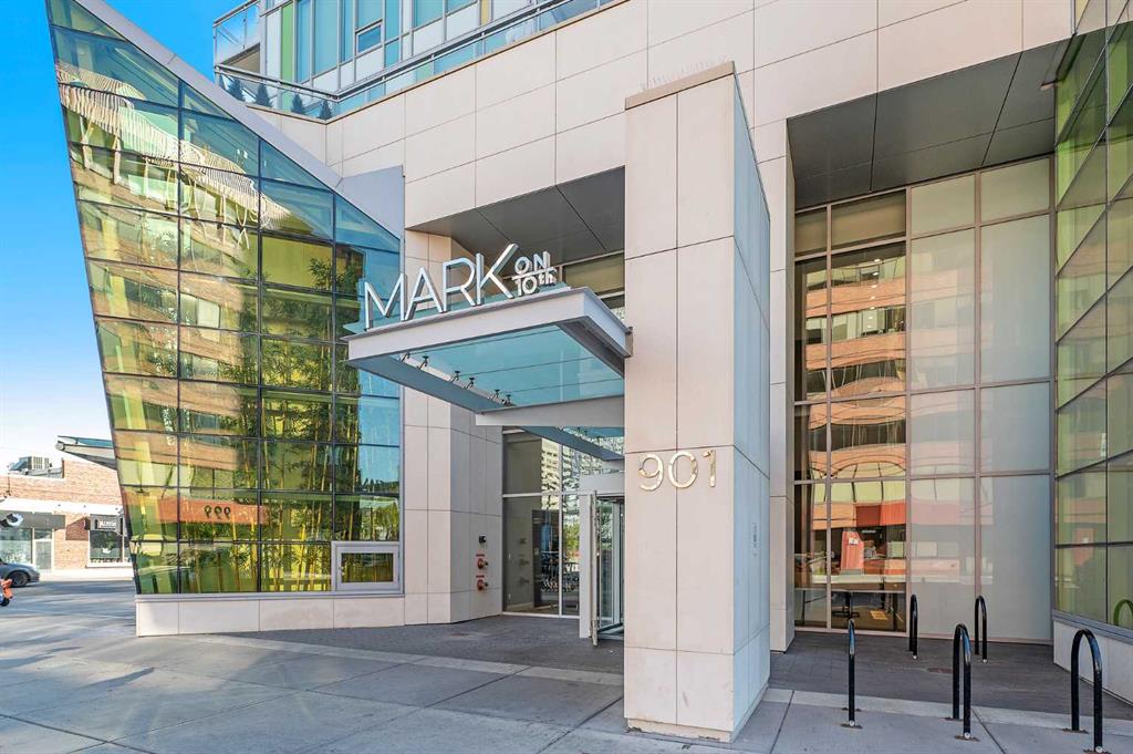 Centrally located in the Mark on 10th building, this 1 bedroom plus den condo boasts beautiful downtown views! The open plan presents laminate flooring & high ceilings, showcasing the kitchen which is tastefully finished with quartz counter tops, glossy white cabinetry, built-in appliances & ample space for a casual dining area. The spacious living room has access to a private balcony with downtown views. A cozy den/office provides the perfect space for a home office set-up. A spacious bedroom with ample closet space, a 4 piece bath & in-suite laundry complete this condo. Other notable features include one titled, secured, heated underground parking stall & an assigned storage locker. Mark on 10th boasts first class amenities, such as a fully equipped fitness centre, sauna, guest suite, gorgeous party room with comfortable seating areas, bar & pool table, a rooftop deck with BBQ facilities, hot tub & firepit. The location can’t be beat, walking/biking distance to Bow River pathways & close to 17th Avenue, shopping, public transit & easy walking distance to downtown. Immediate possession is available!