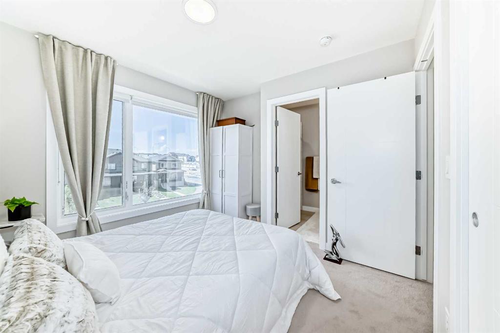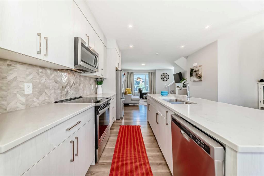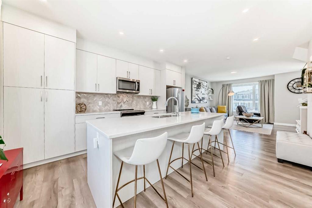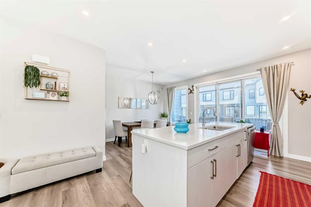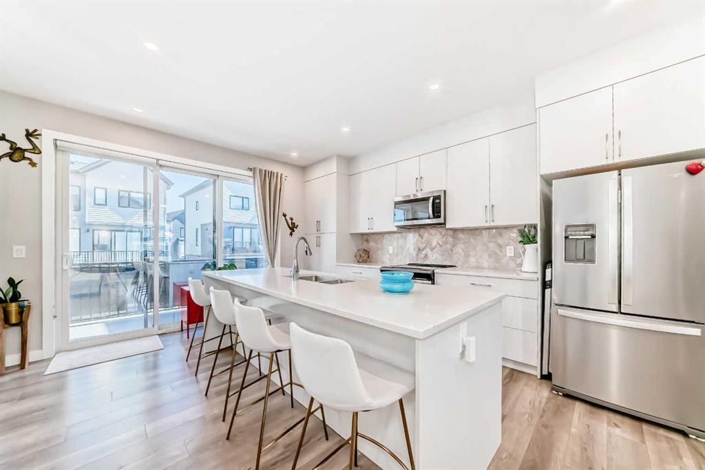 This gorgeous end unit home offers the perfect mix of sophistication, comfort and functionality. As you enter, There is flex space utilized as a office, and entry to the attached double garage. Upper floor, enjoy the open-concept layout with large UV protected windows but let in ample natural light, beautiful designer finishes throughout makes the home feel airy and relaxing. This green certified home features neutral laminate flooring, quartz countertops and stainless steel appliances. Main living area is greeted with a spacious and bright living room that flows seamlessly to kitchen with large island, dining room which leads out into the large balcony to take in the fresh air. The functional half bathroom is nicely tucked away. Upper floor contains cozy master bedroom with ensuite bathroom, 2 other bedroom, a spacious full bathroom and a very convenient laundry room to finish off the upper floor. The designer furniture in home is negotiable to stay with the home. Great location, easy access to main roads, walking distance to shopping centre , parks and schools are nearby.