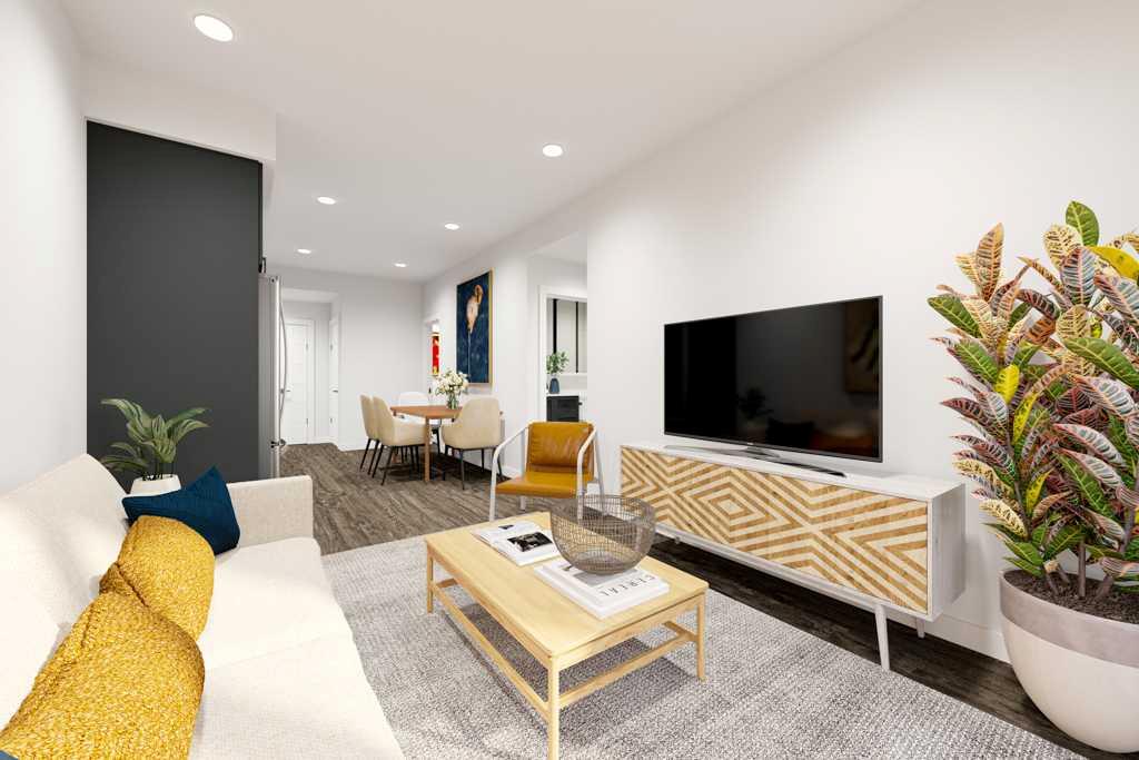Corner positioning changes everything. WINDOWS ON TWO SIDES pull light in from multiple angles, giving the bedrooms, living and dining areas an easy openness that feels natural from the moment you step inside. The kitchen holds its ground as the anchor of the home: FULL-HEIGHT CABINETRY that actually earns its keep, QUARTZ COUNTERS that can handle real life, and under-cabinet lighting that makes both weeknight dinners and late-night snacks feel considered. The open layout doesn’t dictate how you live—it gives you room to decide.
