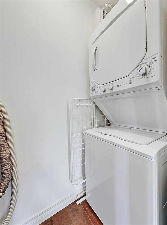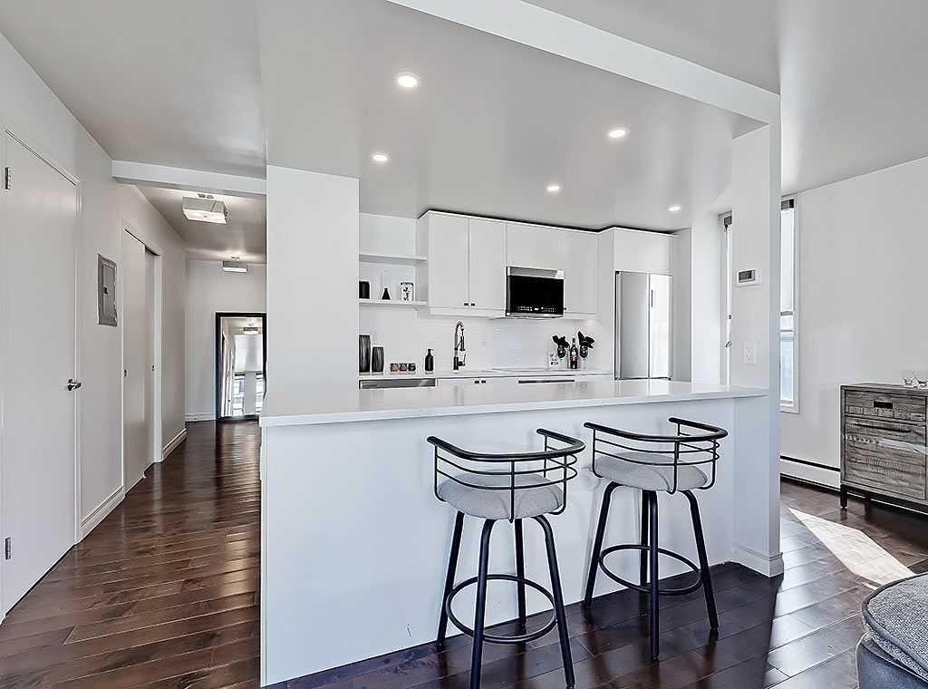 This beautifully renovated 2-bedroom, 1-bathroom, 813 SqFt condo is ideally situated in the heart of Calgary’s vibrant entertainment district. Designed with a modern open-concept layout, the home feels bright and spacious with high-quality upgrades throughout. The custom kitchen features premium finishes including a high-end induction cooktop, built-in convection oven, counter-depth refrigerator, integrated dishwasher, quartz countertops, pantry, open shelving, USB outlets, and a cleverly designed in-cabinet organizer for cutting boards and bakeware. Warm hardwood flooring extends through the living areas and bedrooms, complemented by custom Hunter Douglas roller shades for both style and privacy. The two bedrooms are generously sized, with a well-appointed 3-piece bathroom showcasing a contemporary vanity, custom tiled shower, and modern tile flooring. Additional conveniences include an in-suite washer/dryer with extra storage, central vacuum system, and a northwest-facing balcony offering sunset and downtown skyline views. This well-maintained building is in the process of having a new elevator installed. The property includes a titled underground parking stall and a large titled storage unit. Perfectly positioned, you’ll be just steps from 17th Avenue, Central Memorial Park, Haultain Park & Tennis Courts, downtown amenities, and all that the 4th Street mission area has to offer.