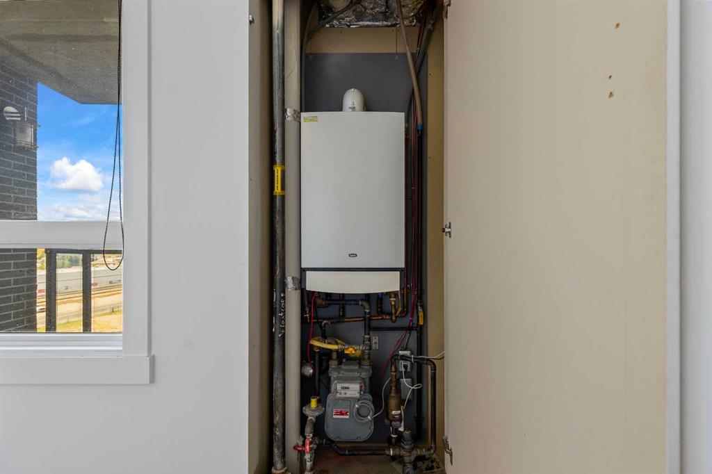 The primary bedroom includes a 4-piece ensuite, while the second bedroom offers flexibility as a guest room, office, or shared living space. In-suite laundry with a stacked washer/dryer adds everyday convenience, and the unit comes with 1 assigned underground parking stall in the secure parkade. Unique to London at Heritage Station, each unit features its own hot water on demand heating system, meaning residents only pay for what they use – a major efficiency and cost-saving benefit, with all utilities individually metered.