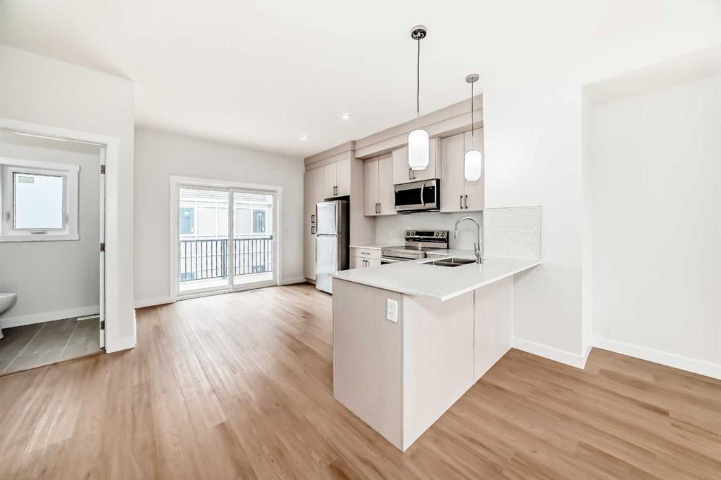 ,Brand New, Never Lived In Before, Very Low Condo Fees, Offering 3 spacious bedrooms and 2.5 elegantly appointed bathrooms, this showpiece home welcomes you with a bright, open-concept floor plan, Luxury Vinyl Plank (LVP) flooring, and tasteful tile finishes that exude modern sophistication. The second level reveals a chef-inspired kitchen complete with quartz countertops, pot lighting, stainless steel appliances, and soaring textured ceilings—perfectly blending form and function for the contemporary homeowner. Additional highlights include a tandem attached garage and low monthly condo fees, all nestled within a professionally maintained development. Enjoy the ease of urban living with essential amenities just steps away—including Chalo FreshCo, Tim Hortons, RBC, and direct transit access at your doorstep. Strategically positioned near the upcoming Sikh Gurdwara, future LRT station, and planned schools, this location is ideal for both families and professionals alike. With seamless access to Stoney Trail and just a 15-minute commute to Calgary International Airport, this property offers convenience, connectivity, and long-term growth potential—all at a market-disrupting price. Act quickly—opportunities like this don’t last. Schedule your private viewing today and experience the perfect blend of value, style, and location.
