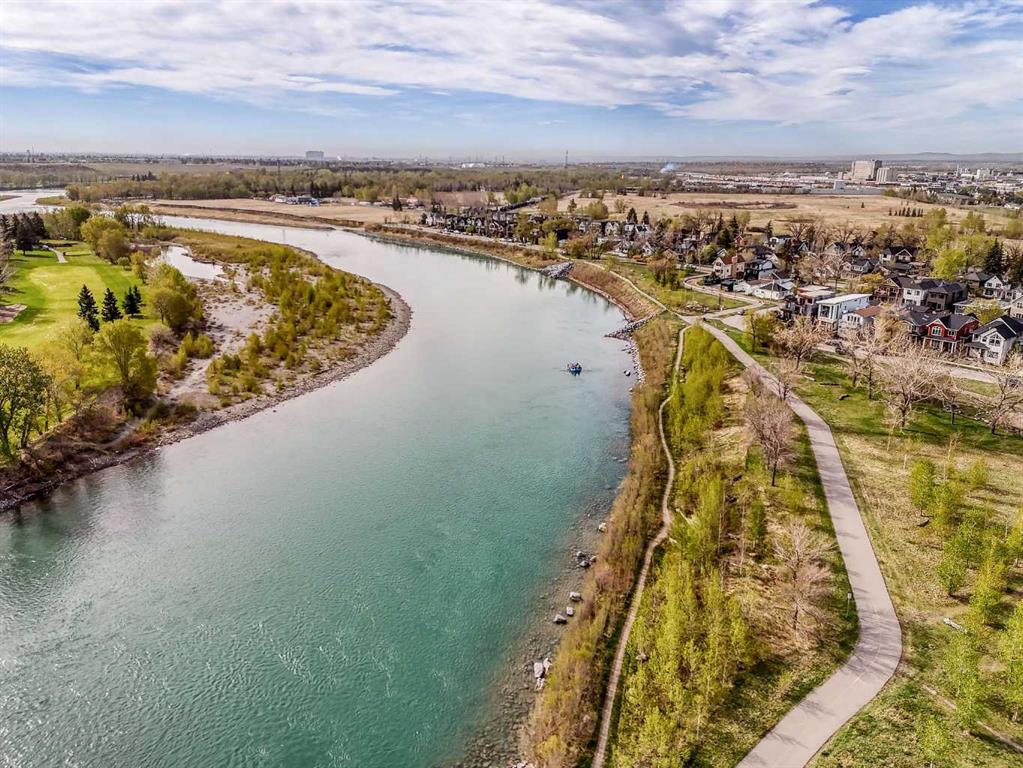 The open-concept living and dining area is filled with natural light from large windows and enhanced by a cozy gas fireplace, creating a warm and inviting atmosphere. The primary bedroom flows seamlessly into a versatile den — perfect as a home office, reading nook, or guest space. The elegant 4-piece bathroom provides a spa-like retreat with a soaker tub and separate glass shower. Additional conveniences include in-suite laundry and central air conditioning for year-round comfort. Enjoy the ease of a heated underground parkade with direct access to your parking stall and storage. As a resident of SoBow, you’ll have access to premium amenities, including a fully equipped fitness centre, media and games rooms with pool tables and kitchen facilities, and a beautifully landscaped outdoor courtyard. Located just steps from the Bow River, Pearce Estate Park, pathways, shops, restaurants, and cafés, with quick access to downtown and Deerfoot Trail, this penthouse offers the perfect blend of luxury, convenience, and community charm.