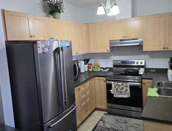Welcome to this **TOP Floor-South Facing Condo – 2 Bedroom, 2 - 4pc bathrooms with 2 assigned parking stalls. Surrounded by Mature trees and beautiful views!! Ideally located in a well-established community with easy access to shopping, transit, schools, and major roadways. This unit is on the top floor of a well-managed complex. Step inside to discover a freshly painted interior and reno throughout bedrooms, bathrooms, kitchen and new floors. This sunny unit offers the prefect blend of comfort, style and convenience. Large sliding doors open out to your private balcony to enjoy the views and an evening BBQ. The two bedrooms are well separated for privacy, making the layout great for roommates, guests, or office. The primary suite features a walk-through closet and a 4 pcs ensuite. The second bedroom has easy access to a 4-pc bathroom. With reasonable condo fees in a well-cared building. It's a perfect opportunity for low maintenance and move in ready living.