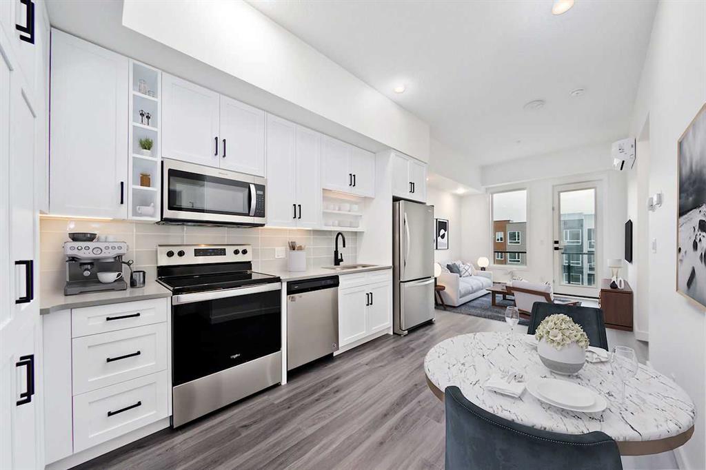 Discover contemporary comfort in this stylish 2-bedroom condo located in the coveted University District. This top-floor residence showcases a refined selection of modern upgrades throughout. The well-planned interior includes stainless steel appliances, quartz countertops, floor-to-ceiling cabinetry, elegant dropdown ceilings, and LED under-cabinet lighting that adds a sophisticated touch. Luxury vinyl plank flooring stretches throughout the unit, contributing to its clean and modern aesthetic. Step onto your private patio to enjoy a peaceful morning coffee or fire up the barbecue in the evening, and appreciate year-round comfort thanks to built-in air conditioning. The building offers an impressive range of amenities designed to elevate your lifestyle, including a 700 sq. ft. main-floor lounge with a full kitchen, a car wash bay in the parkade, secure bike storage, and an expansive 4,200 sq. ft. rooftop patio on the second floor—complete with seating areas, landscaped planters, and a welcoming gas fireplace. Ideally situated in one of Calgary’s most accessible and amenity-rich communities, you are just steps away from Save-On-Foods, cafés, fitness studios, and a growing list of urban conveniences. With the University of Calgary, Market Mall, and Alberta Children’s Hospital only minutes away, the location delivers unmatched ease for everyday living.