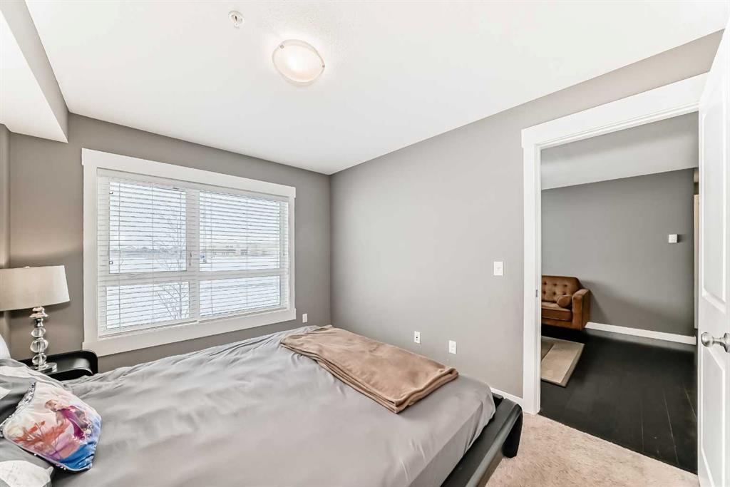 Welcome to modern and beautifully appointed 2-bedroom, 2-bathroom condo backing to green space located in the vibrant community of Skyview Ranch. Ideal for first-time buyers, young professionals, or investors, this stylish home features an open-concept layout with abundant natural light. The unit features a generous living room that provides a comfortable space to relax and extends to a private balcony facing the tranquil green space—perfect for enjoying the morning sunrise or settle in for peaceful evenings. A corner chef inspired kitchen with stainless steal appliances and plenty of storage. This thoughtfully designed layout features a spacious primary bedroom complete with double closet and a stylish ensuite. The second bedroom is ideal for guests or as a comfortable space for a growing family. Additional highlights include another 4 piece bathroom, in-suite laundry, an open office area, titled underground parking, and convenient access to amenities such as visitor parking. Enjoy the convenience of quick access to major roadways, including Deerfoot Trail and Stoney Trail, along with nearby public transit for an easy commute to downtown Calgary. You’re also just minutes from the International Airport. Skyview Ranch is a family-friendly neighborhood offering schools, parks, and shopping within walking distance, plus a short drive to Costco, CrossIron Mills, Chalo FreshCo, Shoppers and many more for all your everyday needs. Don’t miss this outstanding opportunity to own a contemporary home in one of Calgary’s fastest-growing communities.