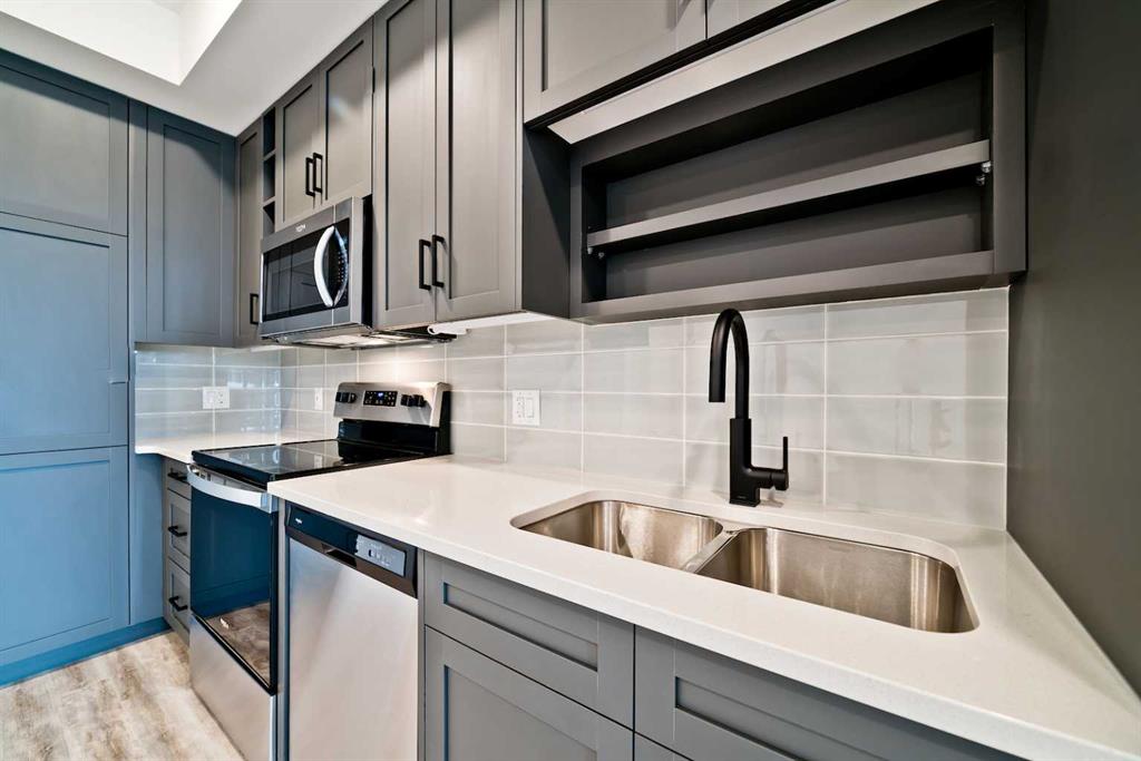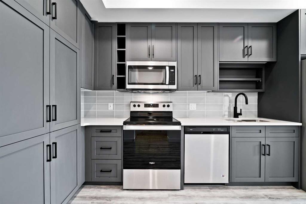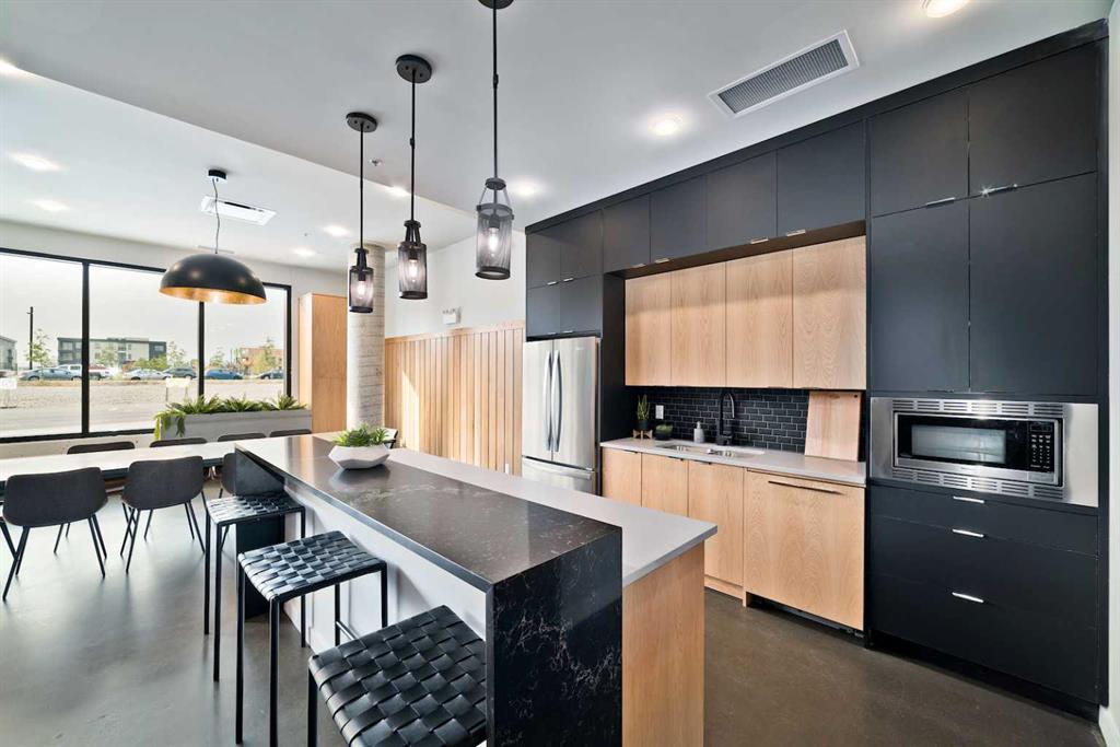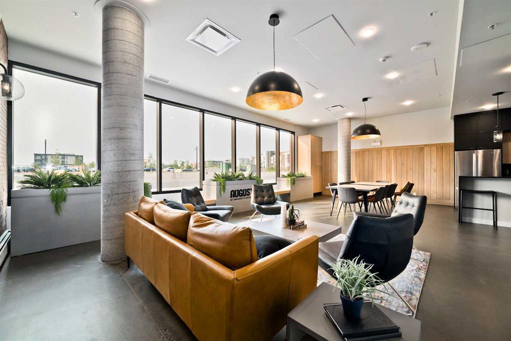 Experience modern urban living in this beautifully designed 2-bedroom condo in the highly sought-after University District. This bright top floor home immediately welcomes you with an abundance of natural light and elevated modern finishes. The thoughtfully designed layout features stainless steel appliances, quartz countertops, floor-to-ceiling cabinetry, dropdown ceilings, and LED under-cabinet lighting for a sleek, polished look. Luxury vinyl plank flooring flows throughout, enhancing the contemporary feel. Enjoy morning coffee or evening barbecues on your private patio, and stay comfortable year-round with in-suite air conditioning. Residents enjoy exceptional building amenities including a 700 sq. ft. lounge with a full kitchen off the main lobby, a car wash bay in the parkade, secure bike storage, and a beautifully appointed 4,200 sq. ft. rooftop patio on the second floor—complete with bench seating, planters, and a cozy gas fireplace. Positioned in one of Calgary’s most connected and convenient areas, the building sits just steps from Save-On-Foods, popular cafés, fitness studios, and a host of new amenities. The University of Calgary, Market Mall, and Alberta Children’s Hospital are all just minutes away, making this an unbeatable location for everyday living.