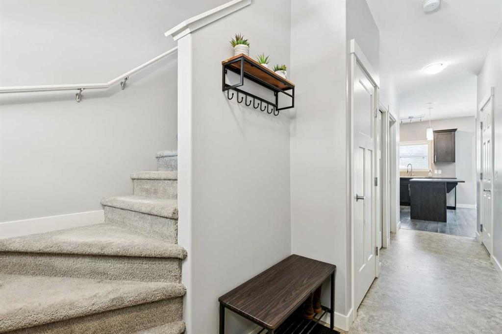 Lovely townhouse with 3 bedrooms, nice outside PRIVATE PATIO and ATTACHED garage! This townhouse is very well-maintained and very clean. Entry on the main floor leads to the attached garage and to the living area. The kitchen has STAINLESS STEEL appliances and a large ISLAND that also works as a breakfast bar. The dining area gives ample room for a dining set. The living area has large PATIO doors, giving lots of natural light to the entire main floor of the unit. This PATIO is great and gives that extra living space for a seating area and a BBQ. A BBQ gas line is installed. A 2-pc bathroom completes the main floor. Upstairs are 3 bedrooms, an ensuite bathroom and a second 4pc bathroom. The primary bedroom is very large, with vaulted ceilings, a walk-in closet and the 4pc ensuite bathroom. The other two bedrooms share another 4-pc bathroom. The laundry area is conveniently located upstairs. The FULL BASEMENT is unfinished and totally open to your ideas on how to create even more living space and potentially a FOURTH bedroom. This unit comes with TWO PARKING spots, one in the attached garage and one on the concrete driveway. NOTE the difference between the 3-storey and 2- storey townhouses in this complex: the 2-storey units, like this one, have a BASEMENT and OUTDOOR SPACE, where the 3-storey ones have neither one. The entire complex, Arrive at Skyview Ranch Arbours, is well-maintained. Upon entry to the complex is a nice garden with a large playground for the kids. As well, there are charging stations for EV’s and good visitor parking. Its location is easy to reach via 60 Street NE. Several elementary schools are a stone's throw from this complex, as well as athletic fields and shops. Overall, a very nice townhouse to call home!