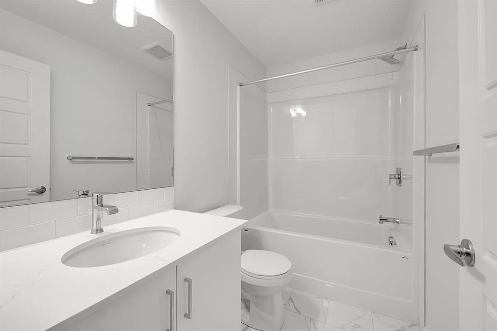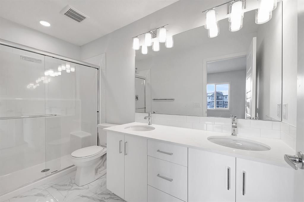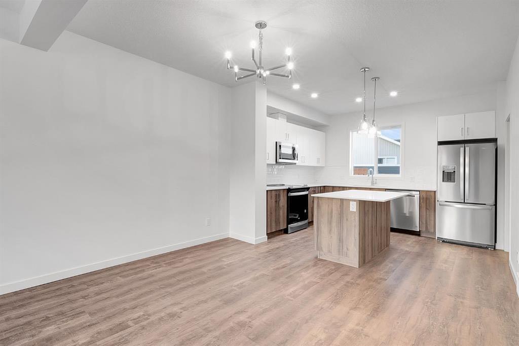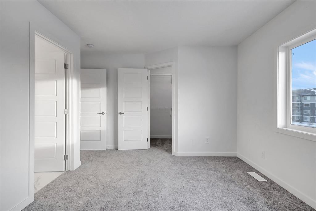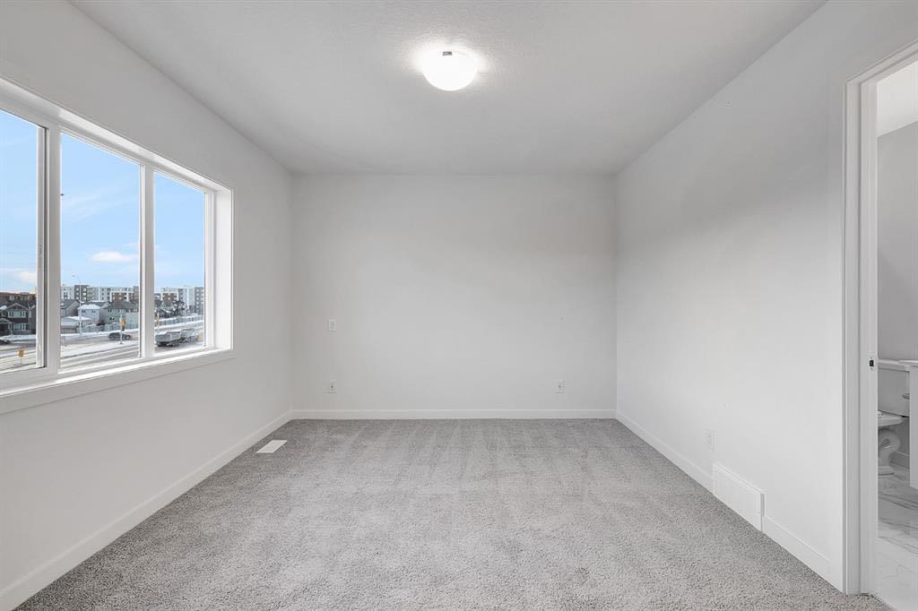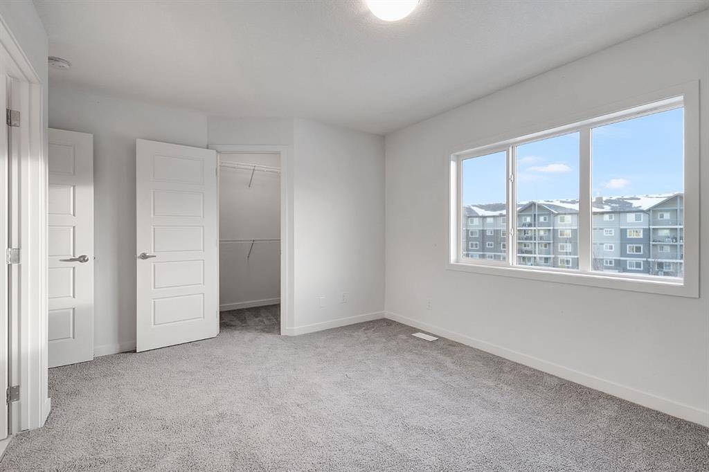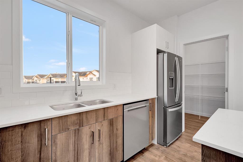 Modern and Stylish Townhome in Red Embers Point by Award-Winning StreetSide Developments Welcome to #627 in Red Embers Point East, a beautifully designed 3-bedroom, 2.5-bathroom townhome built by the award-winning StreetSide Developments in the desirable Redstone community. This modern MOVE IN READY home boasts a bright and open floor plan with premium finishes, offering a perfect combination of style and functionality. The main floor features an elegant kitchen with sleek cabinetry, stainless steel appliances, a large central island, and a spacious pantry, making it ideal for both everyday living and entertaining. The dining area flows seamlessly into the cozy living space, with large windows allowing for plenty of natural light. Just off the main floor, a private deck provides the perfect spot for outdoor relaxation. Upstairs, you'll find a well-appointed primary bedroom with a walk-in closet and a luxurious ensuite bathroom featuring dual vanities and a walk-in shower. Two additional bedrooms offer ample space for family or guests, with a full bathroom and a convenient laundry area located just down the hall. The lower level offers a flexible space that can be used as a home office, gym, or additional storage. Completing this home is the tandem double attached garage, ensuring plenty of parking and storage options. Located in the vibrant community of Redstone, this home is close to parks, playgrounds, and pathways, with easy access to shopping, schools, and major roadways. Don’t miss the opportunity to live in this beautiful new townhome! PHOTOS ARE FROM A COMPLETED UNIT IN ANOTHER PROJECT - RED EMBERS POINT.