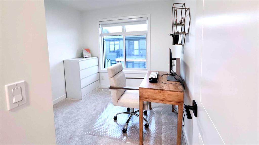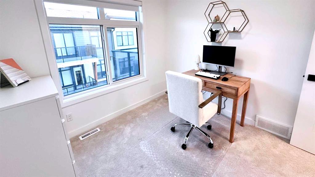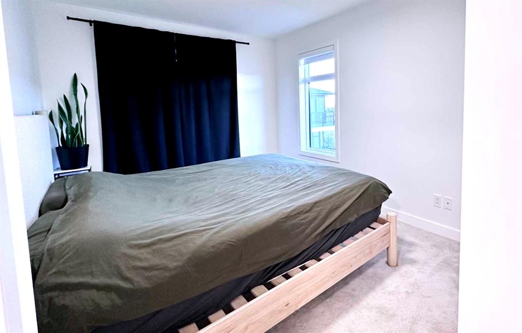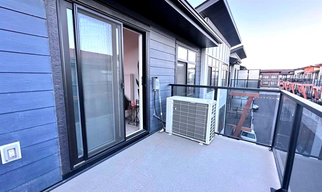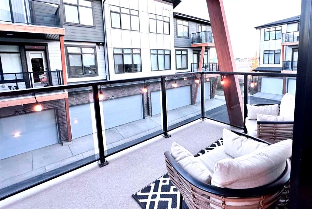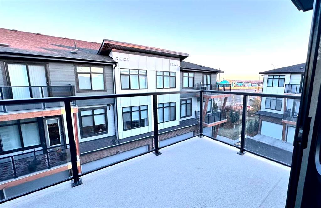This is your opportunity to own 1 year old end unit with central AC, finished double garage with epoxy flooring, full gym and a sauna, 2 balconies and low strata fees ($231). Seton is a vibrant, master-planned community known for its modern amenities, healthcare facilities, retail options, and recreational spaces, making it a desirable place for both living and working. Main floor features open layout that connects kitchen, dining and living space. The kitchen features: quartz counters, stainlesteal appliances, beautiful cabinetry, large eating island, storage space. The main floor is completed with additional windows on the end unit, as well as a balcony. Upstairs has 3 bedrooms, 2 full baths, second balcony is located in primary bedroom. Laundry room is also located upstairs.This unit comes with window coverings, central water filtration system and water softener. Yes it is also pet friendly. Newly built HOA building equipped with tennis courts, pickleball courts, ice ring, basketball court and so much more will allow you and your family to relax during your leisure time.