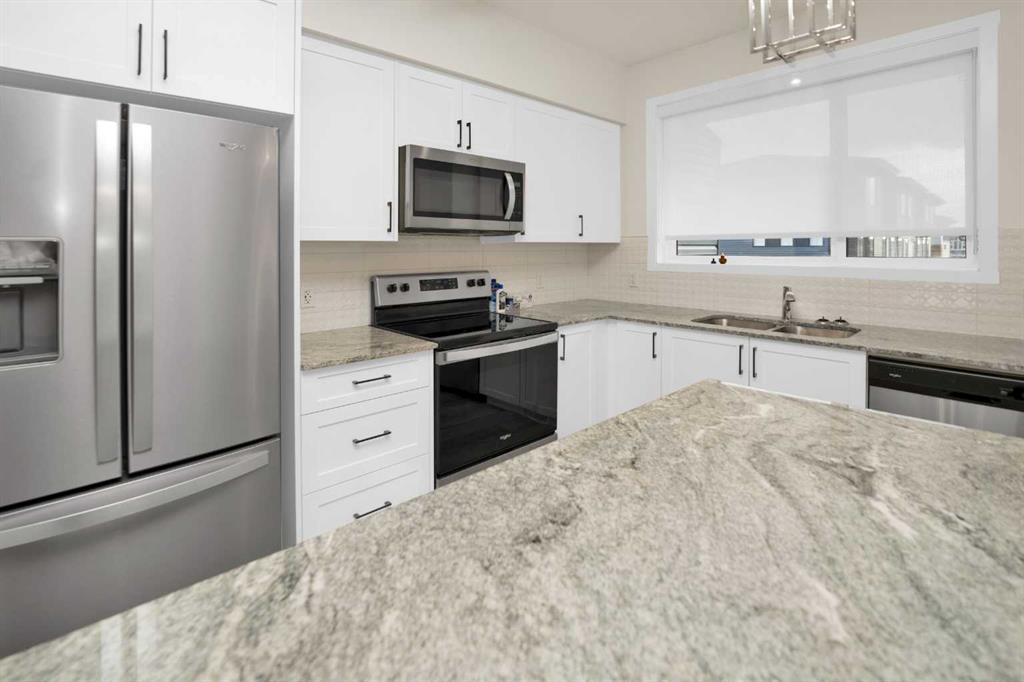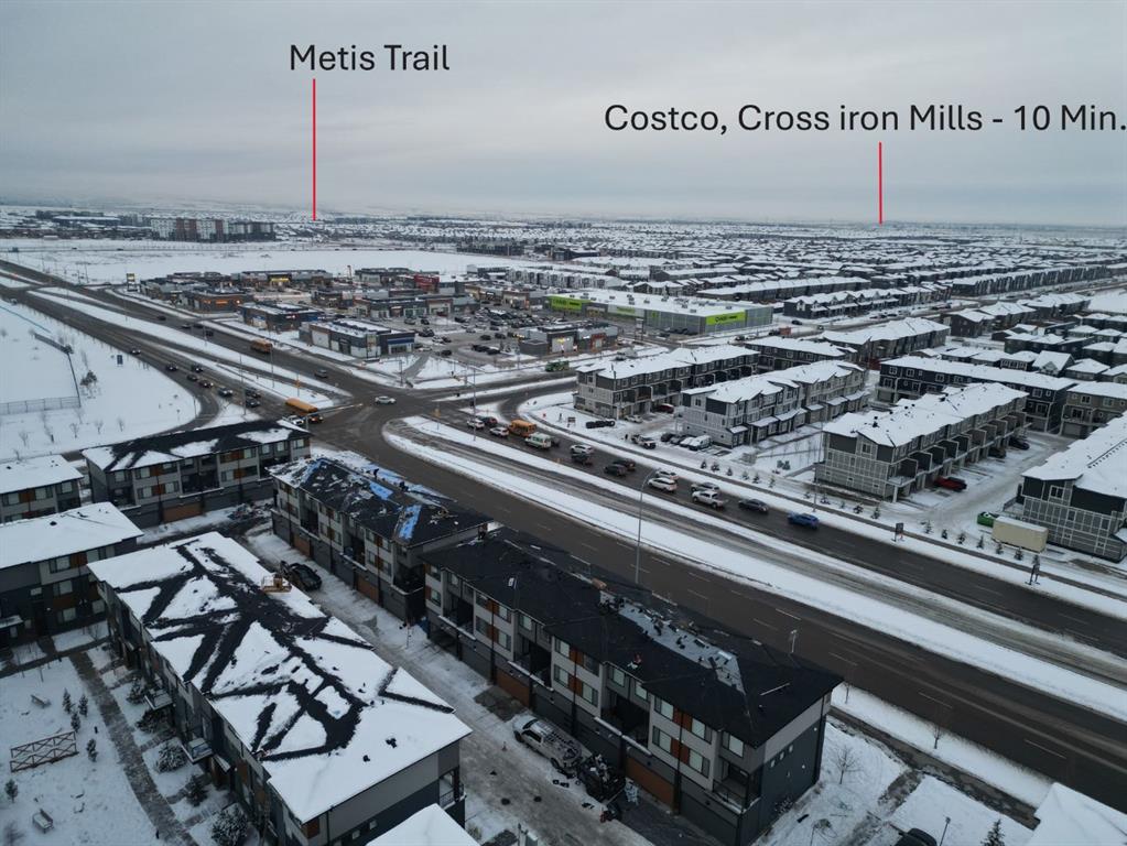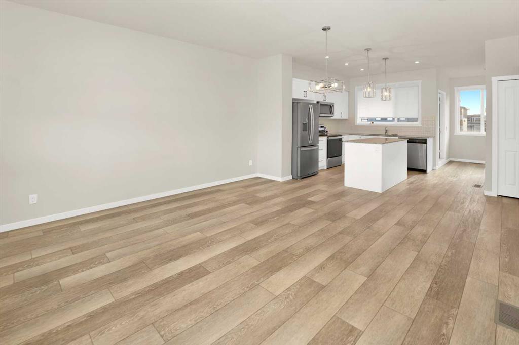 Modern three-storey townhome in the highly convenient community of Cornerstone! This like-new residence features a stunning open-concept main floor with LVP flooring, a bright chef’s kitchen showcasing modern white cabinets, stainless steel appliances, and quartz/granite countertops. The upper level offers three spacious bedrooms, including a primary suite with a private ensuite, plus desirable upper-floor laundry. Complete with a double attached garage and a versatile den/flex room, this home is just steps from shopping (Chalo! FreshCo, Tim Hortons) and provides excellent access to Stoney Trail, Deerfoot Trail, and the Calgary International Airport.