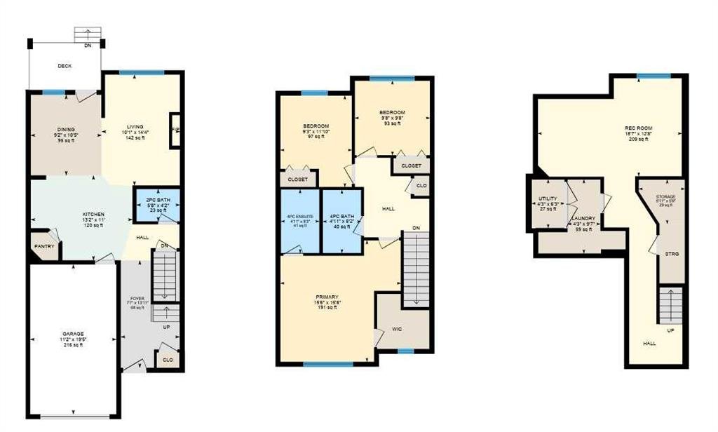 Upstairs, you’ll find three bedrooms, including a primary suite with a walk-in closet and private ensuite, while the two additional bedrooms share a second full bathroom.