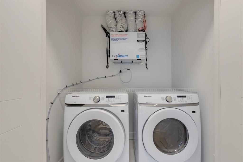 Enjoy the ease of in-suite laundry, a private balcony, and A/C rough-in for year-round comfort. A titled underground parking stall ensures your vehicle stays secure and accessible in all seasons.