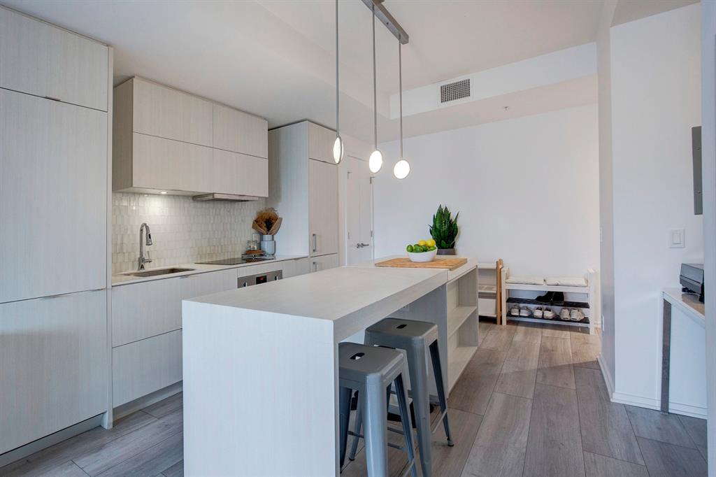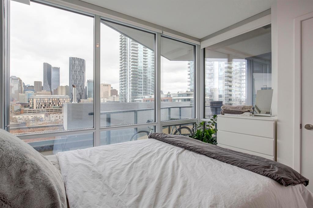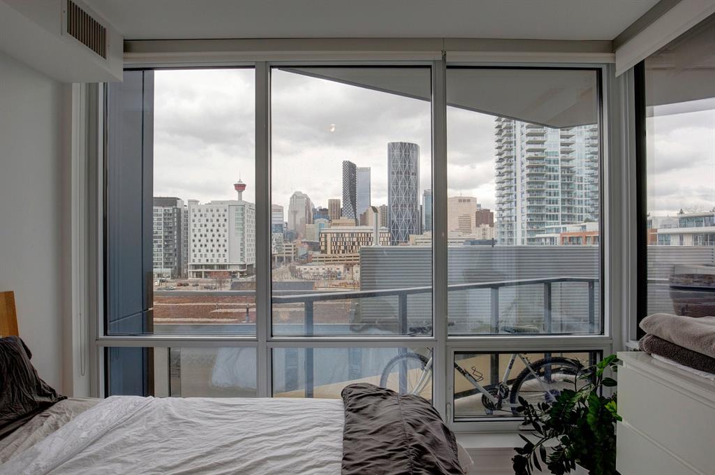 Great Investment Opportunity! Welcome to this luxurious condo with breathtaking DOWNTOWN VIEWS located in the vibrant East Village! Enjoy stunning city views from the living room, bedroom, and private balcony, making this unit truly one of a kind. This ultra-modern home features an open-concept floor plan filled with natural light, high-end built-in appliances, elegant cabinetry, and sleek quartz countertops. The spacious bedroom, stylish 4-piece bathroom, and a dedicated office area create the perfect blend of comfort and functionality. Additional features include UNDERGROUND PARKING and STORAGE. The building offers exceptional amenities such as a FITNESS CENTER,PARTY ROOM, hot tub on the 6th floor, guest suite, observation lounge and public deck on the 25th floor, plus 24-hour concierge and SECIURITY. Located just minutes from shopping, C-Train station, Riverwalk, and the new Central Library, this property combines urban lifestyle with convenience. Whether you’re looking for an investment or a stylish downtown home, this one is a must-see!