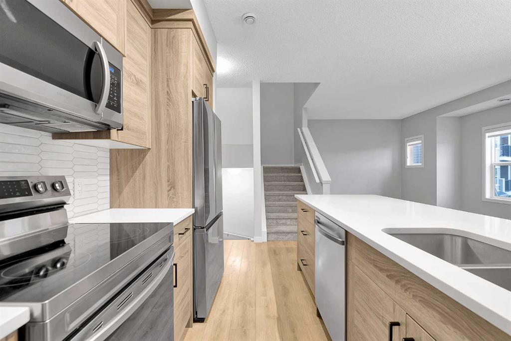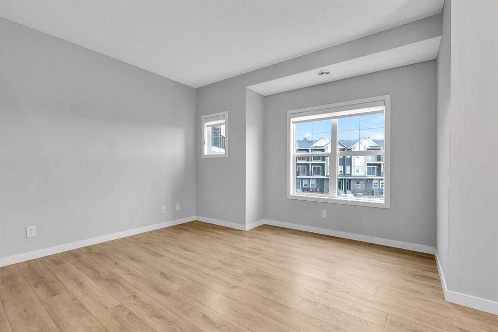 BEST LOCATION IN THE COMPLEX | UNOBSTRUCTED POND VIEWS | IMMACULATE & MOVE-IN READY | Welcome to your new home in Fireside, Cochrane! With 2 bedrooms, 1.5 baths, and stunning unobstructed pond views, this property truly stands out. Step inside to find neutral tones and vinyl plank flooring that create a warm, inviting atmosphere. The modern kitchen features a large quartz island, stainless steel appliances, and ample cabinet space—perfect for everyday living or entertaining. Enjoy your morning coffee or unwind at sunset on the front deck overlooking the pond and walking paths (no parking lot views here!). Upstairs, you’ll find two generous bedrooms—each with a walk-in closet—plus a stylish 4-piece bath and convenient upper-floor laundry. An upgraded blind package adds a sleek, modern touch and extra privacy. Additional perks include a titled parking stall and a private, assigned storage locker with its own entrance—ideal for bikes, gear, or seasonal items. The vibrant Fireside community offers everything you need right at your doorstep—restaurants, boutiques, medical and dental offices, playgrounds, and scenic walking paths. Families will love the proximity to Fireside K–8 School (Rocky View Schools) and Holy Spirit K–6 School (Calgary Catholic School District). Located just 10 minutes to Hwy 1, enjoy quick access east to Calgary or west to the mountains. This is your chance to join one of Cochrane’s most desirable communities—move-in ready and waiting for you!