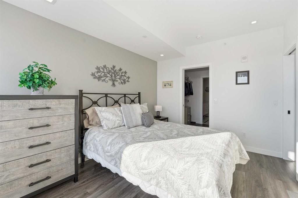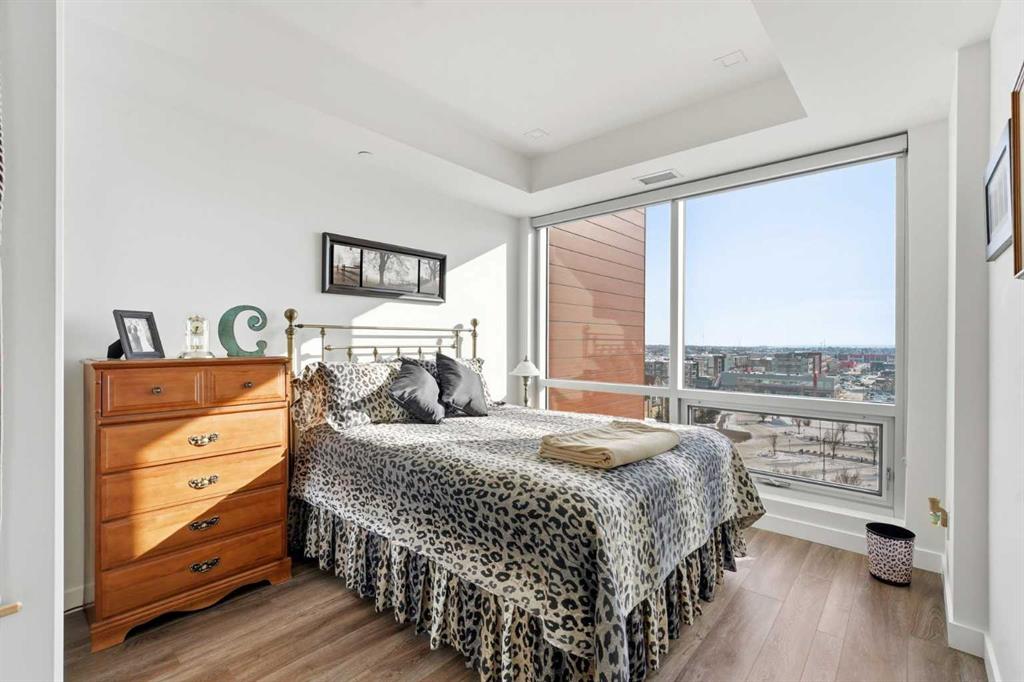 Welcome to Gateway by Truman, where striking contemporary design meets unrivalled urban convenience in Calgary’s highly sought-after West District. This exceptional and sun-drenched 2-bedroom, 2-bathroom unit combines sophisticated modern luxury with seamless everyday functionality. Featuring impressive 9-foot ceilings, expansive floor-to-ceiling windows, and rare custom luxury flooring unlike any others in the building. This residence is filled with inviting natural light and boasts an airy, open-concept layout perfect for both serene relaxation and vibrant entertaining. The gourmet, chef-inspired kitchen showcases elegant quartz countertops, premium full-height soft-close cabinetry, under-cabinet lighting, and top-of-the-line stainless-steel appliances including a gas cooktop and built-in oven. The generous primary suite includes a walk-through closet and an opulent ensuite with double vanities and a glass-enclosed shower, while the second bedroom and full bath provide flexible space for guests, roommates, or a dedicated home office setup. Step onto your oversized, sun-drenched private balcony to enjoy tranquil south exposure and spectacular evening sunsets, complete with a gas line for BBQ or outdoor heating. For all your storage needs, two additional storage lockers are included. Additional conveniences include in-suite laundry, titled underground parking, and access to exceptional on-site amenities such as the owner’s lounge, secure bike storage, and a breathtaking expansive rooftop terrace. Strategically situated just steps from charming boutique shops, cafés, Sobeys and the new West District retail corridor, this residence offers an enviable, unparalleled lifestyle. At its heart lies Radio Park, an award-winning 8-acre urban green space that serves as the community’s social centrepiece. With walking paths, an amphitheatre, a skating pond, and diverse year-round recreational programming, it’s one of Calgary’s most thoughtfully designed public parks, effortlessly blending nature, art, and community life. Experience sophisticated, elevated living in one of West Calgary’s most dynamic and highly desirable neighbourhoods, where luxury, location, and lifestyle perfectly converge.