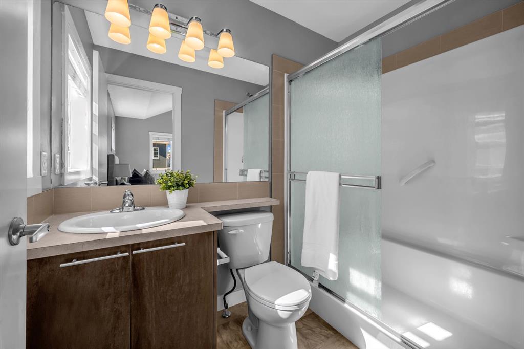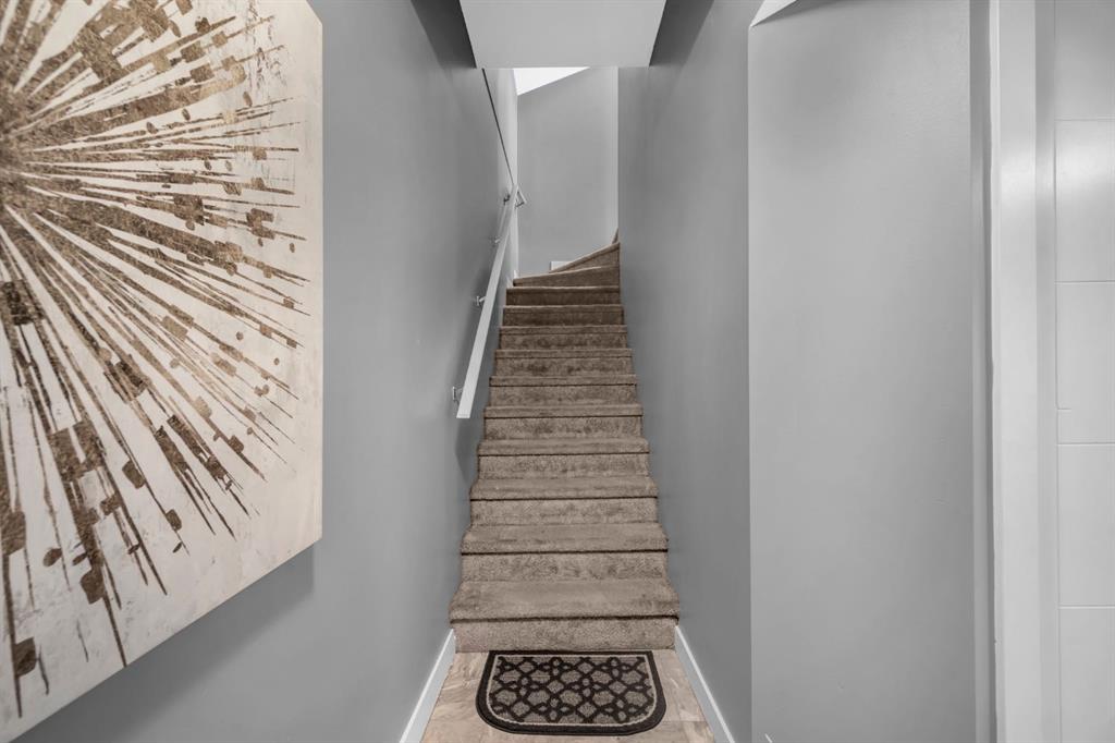 Welcome to this beautifully maintained CORNER unit offering exceptional space and convenience in Redstone. Featuring 4 spacious bedrooms and 2.5 bathrooms, this home is perfect for families or anyone seeking extra room to grow. The bright, open layout is FRESHLY PAINTED and PROFESSIONALLY CLEANED, providing a true move-in ready experience. The main floor consists of a large foyer with access to the garage and bedroom. The second floor features a bright, open layout living area featuring a beautiful kitchen with upgraded stainless steel appliances and island. The open layout of the kitchen, sizeable centre island, dining room and living room make it perfect for entertaining. The huge patio area easily fits a small patio set to sit and relax with a natural gas line hook up ready for your bbq. The upper floor features a huge master bedroom with a VAULTED CEILINGS, walk-in closet and attached ensuite. There are 2 more spacious bedrooms and a full bathroom on the top floor. Enjoy the convenience of an attached single garage plus full driveway, giving you ample parking and storage. With its corner location, this home also benefits from extra windows and natural light throughout. Located in a very quiet location across a park in a family oriented community of Redstone! This home is close to all amenities like bus stop, stores, mall, airport, bus stop, groceries and easy access to Stoney Trail and Deerfoot. Steps away from a new shopping plaza opening on Redstone Blvd!
