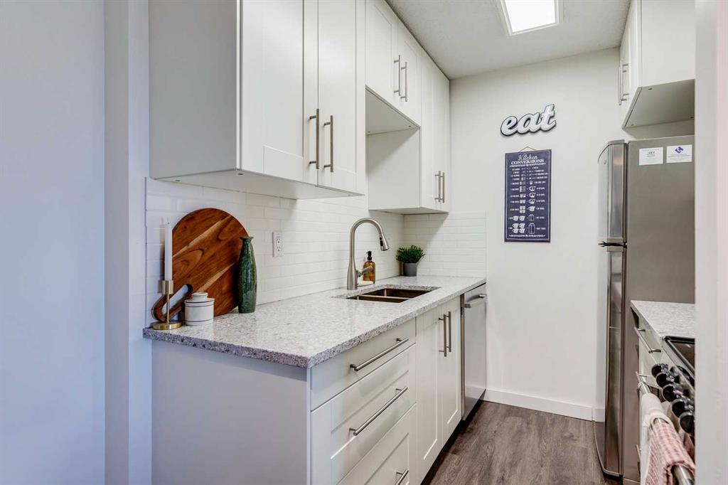 Experience unobstructed downtown views from this exceptional two-bedroom condo in the highly sought-after Village of Westhills condo complex. Perfectly situated in the established community of Coach Hill, this prime location offers effortless access to downtown Calgary, Westhills Shopping Centre, Westside Rec Centre, COP, MRU, and the West LRT, with quick routes to Highway 1 and the Rocky Mountains—ideal for both city living and weekend getaways. Nestled among mature evergreens, this charming home offers a peaceful setting paired with breathtaking views of the Calgary skyline. Inside, the spacious primary bedroom easily accommodates a king sized bed, while the bright living area extends to a private balcony featuring an enclosed storage room. The kitchen has been updated with newer appliances, new cabinets, back splach and quartz counter tops Additional storage is conveniently available in the building’s lower level. An assigned parking stall is located just steps from your front door, and an optional second leased stall can be arranged. With its combination of location, views, and lifestyle amenities, this property presents an excellent opportunity for first-time buyers, empty nesters, or those seeking a smart investment or student accommodation. Surrounded by walking, biking, and hiking trails, this is truly a wonderful place to call home.