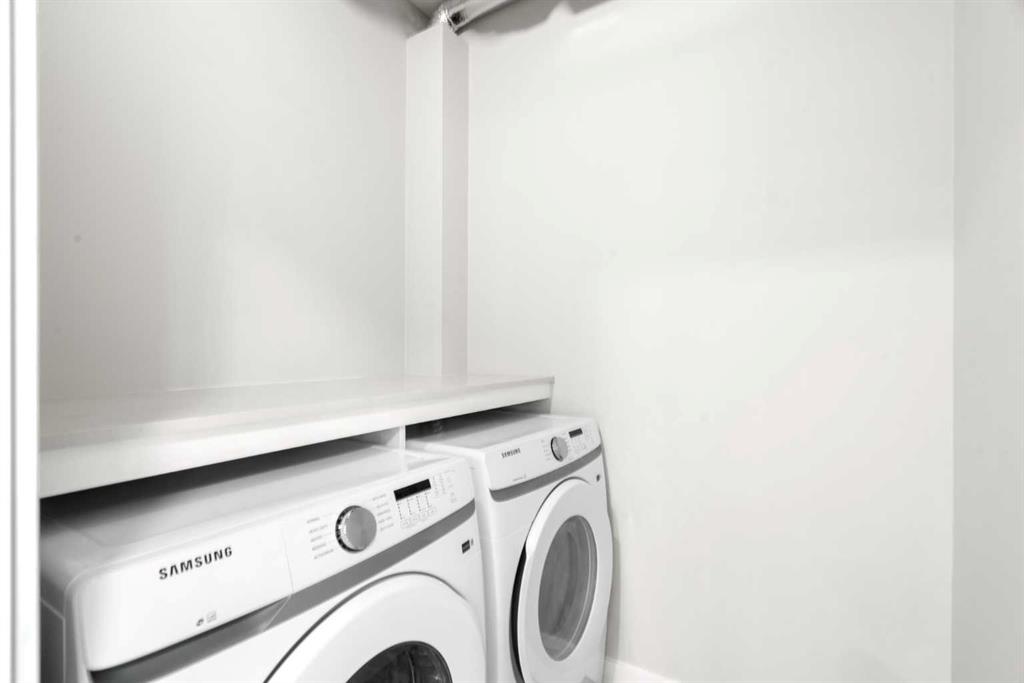 Convenience continues with a dedicated laundry space featuring Luxury Vinyl Plank flooring, a 2cm quartz countertop above the washer and dryer for folding and organization, and added GFI outlets above the laundry table. Closet organizers maximize storage throughout the home, while plush carpet in the bedrooms creates warmth and comfort.